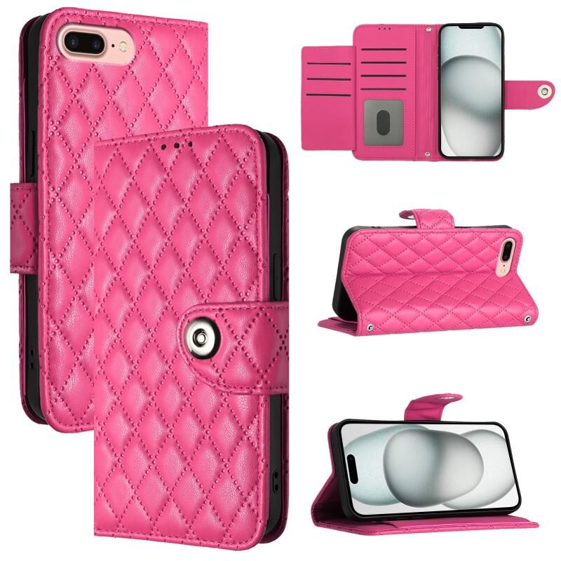 Θήκη τηλεφώνου από δέρμα με ανάγλυφη υφή ρόμβου για iPhone 8 Plus / 7 Plus / 6s Plus με κορδόνι (Κόκκινο)