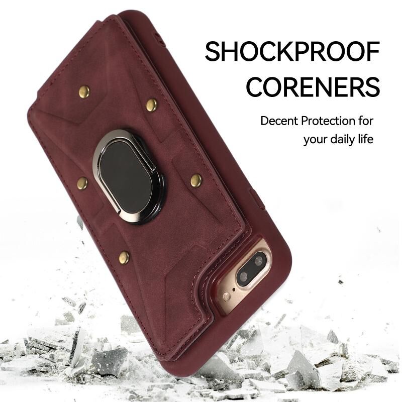 For iPhone 8 Plus / 7 Plus Armor Ring Wallet Back Cover Phone Case(Wine Red)