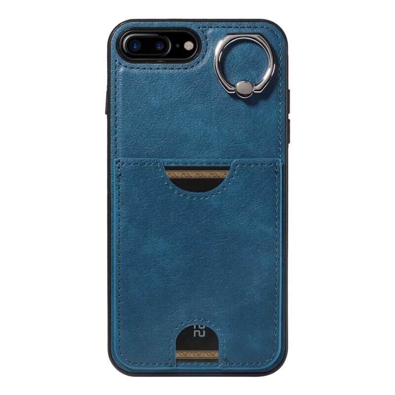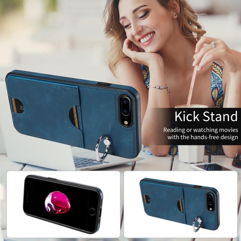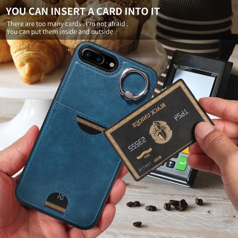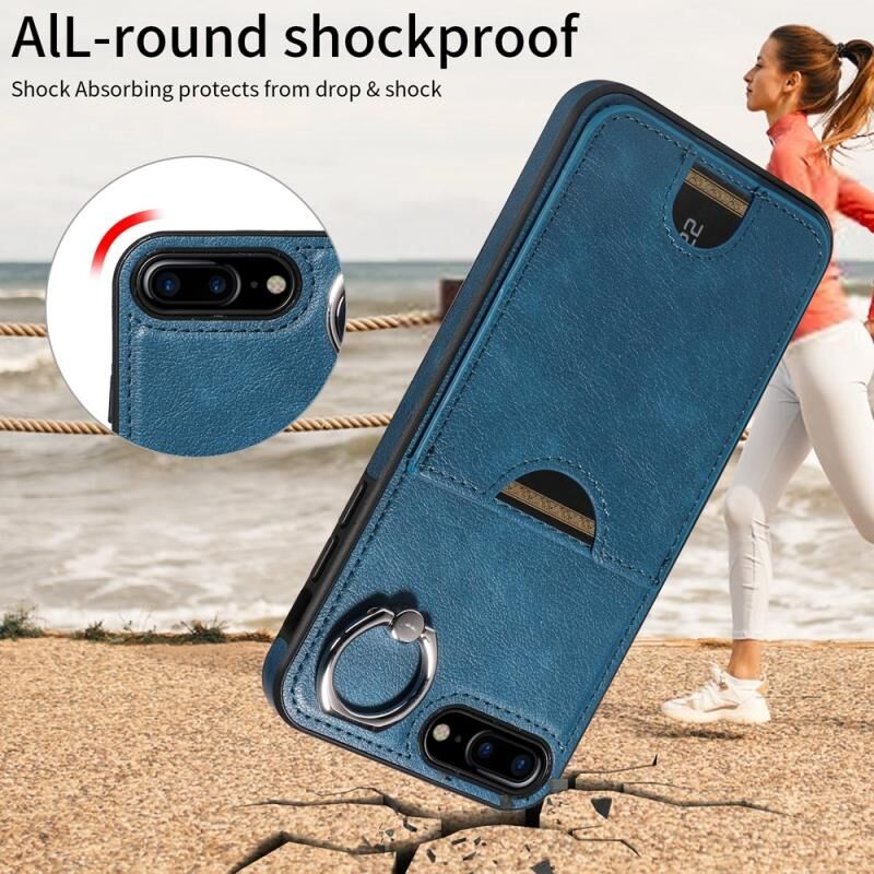 Θήκη τηλεφώνου για iPhone 8 Plus / 7 Plus με υφή δέρματος μοσχαριού, θήκη κάρτας με δακτύλιο συγκράτησης (Κόκκινο)