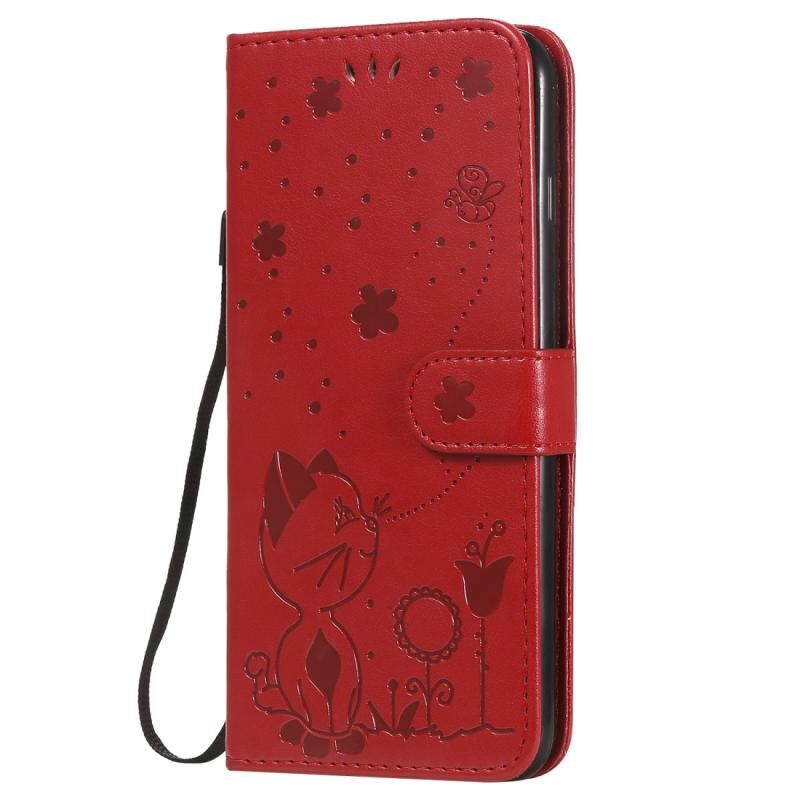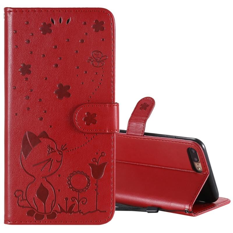 For iPhone 8 Plus / 7 Plus Cat Bee Embossing Pattern Shockproof Horizontal Flip Leather Case with Holder & Card Slots & Wallet(Red)