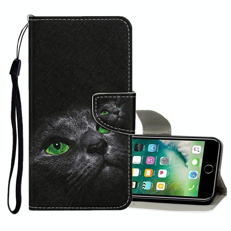 Θήκη δέρματος οριζόντιας αναδίπλωσης με σχέδια ζωγραφικής και χρώματα για iPhone 8 Plus / 7 Plus, με βάση & θήκες καρτών & πορτοφόλι (Μαύρη Γάτα)
