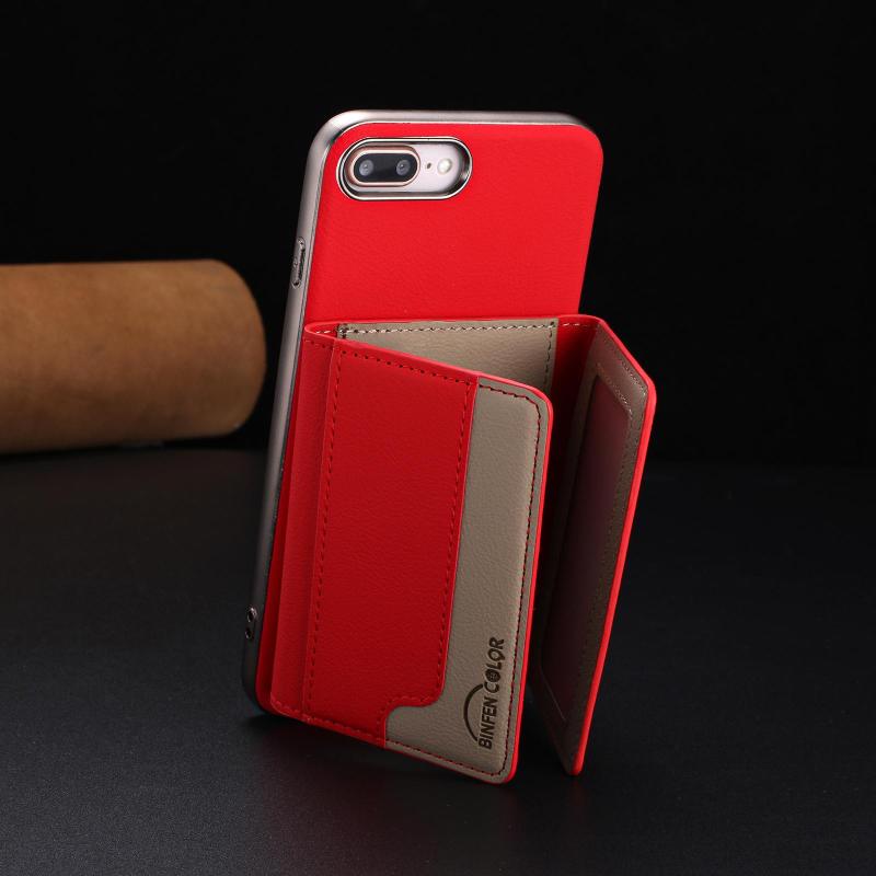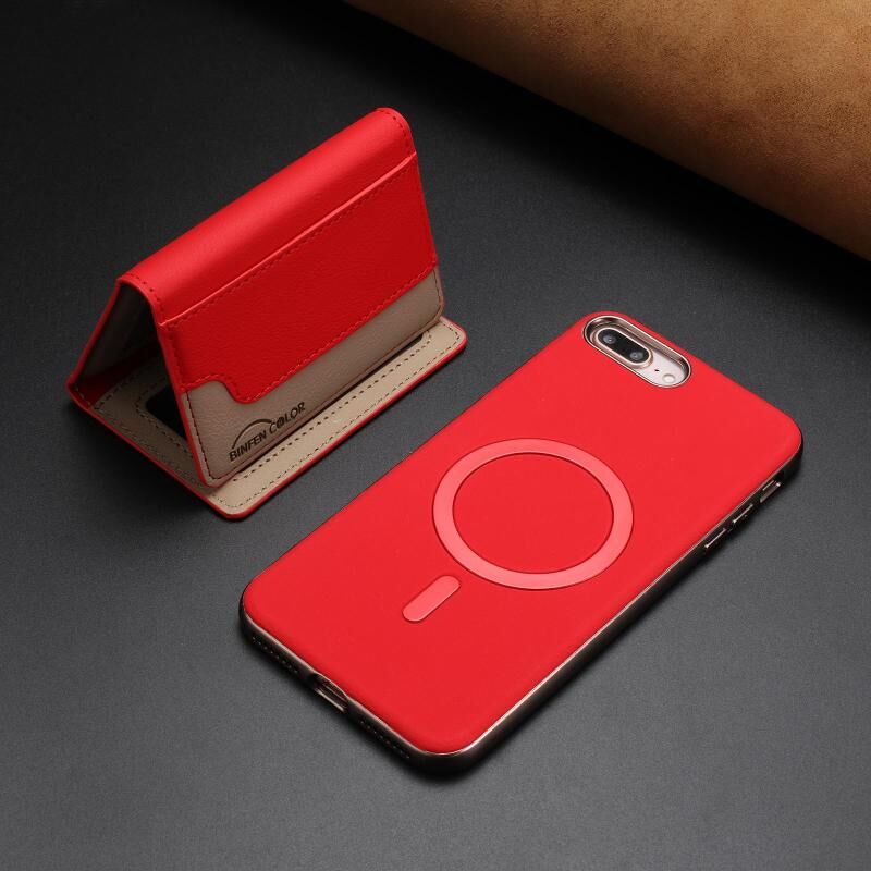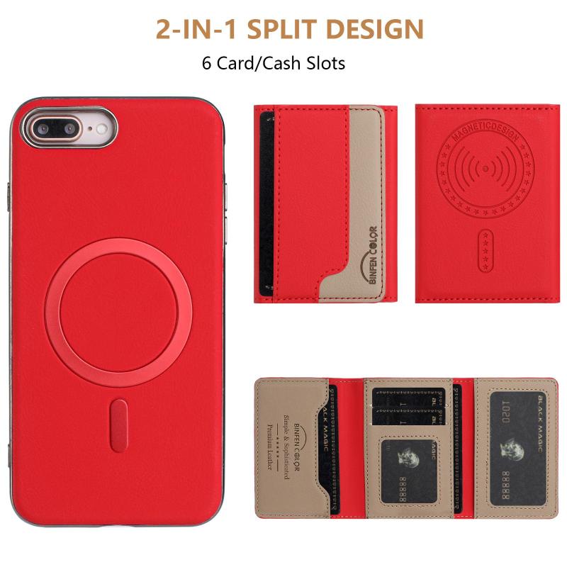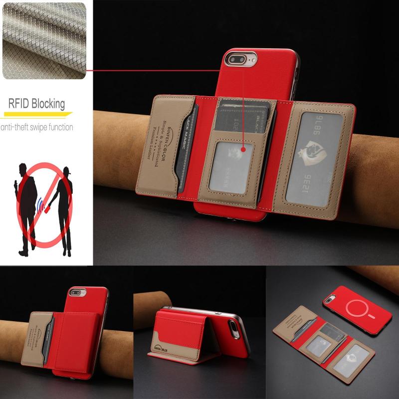For iPhone 8 Plus / 7 Plus Colour Matching Horizontal Magnetic Card Bag RFID MagSafe Phone Case(Red)