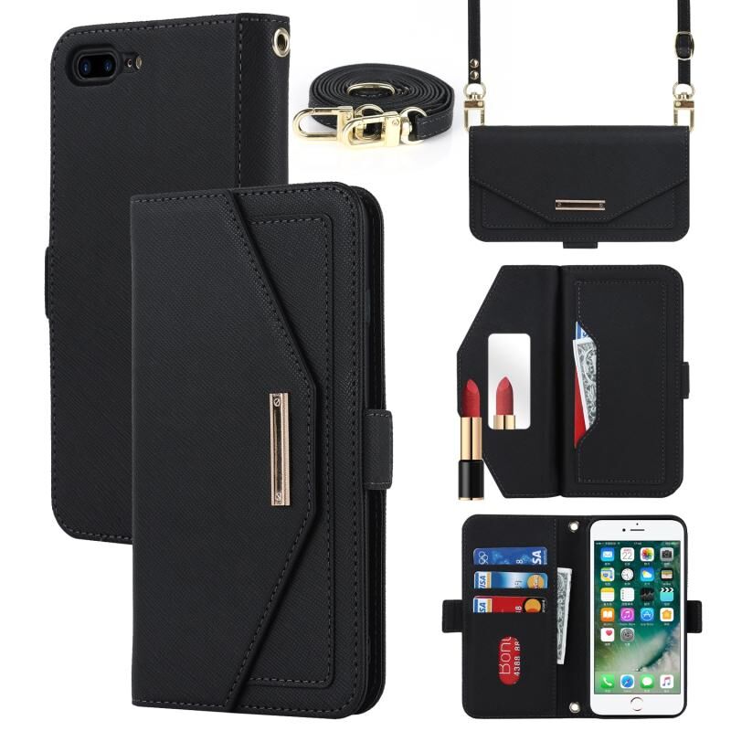 Θήκη τηλεφώνου από δέρμα με ανάγλυφη υφή για iPhone 8 Plus / 7 Plus (Μαύρο)