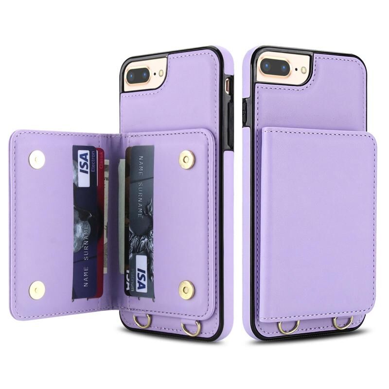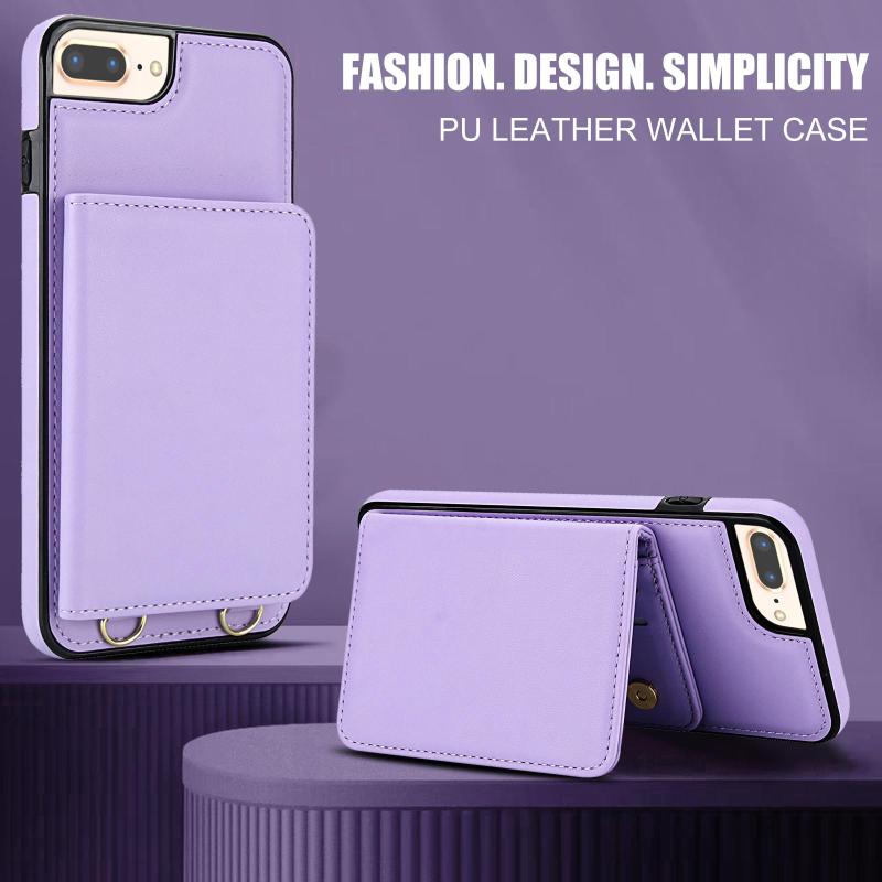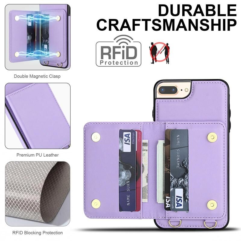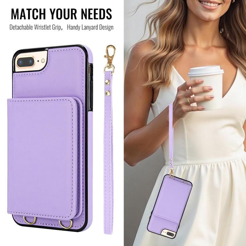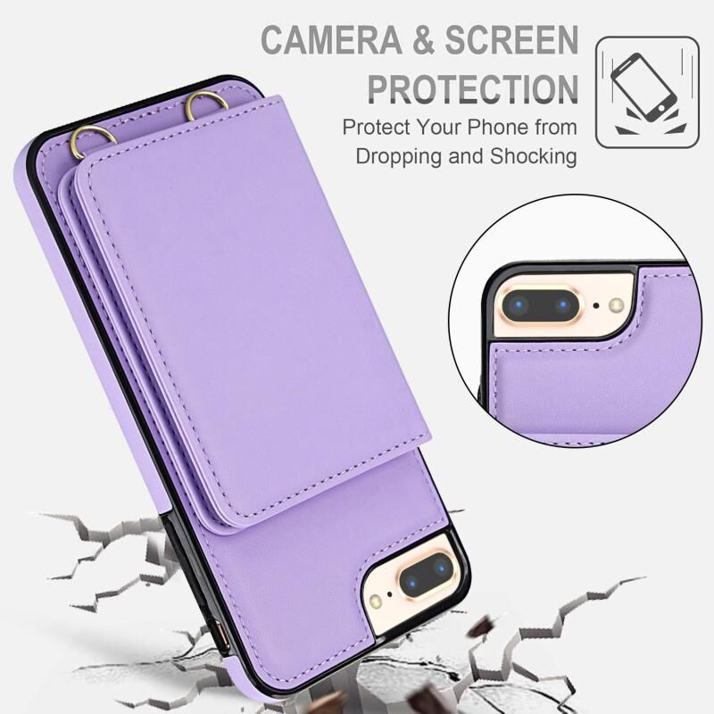 For iPhone 8 Plus / 7 Plus Crossbody Dual-buckle Wallet RFID Back Leather Phone Case(Light Purple)