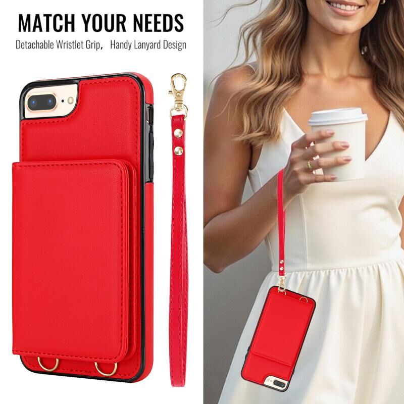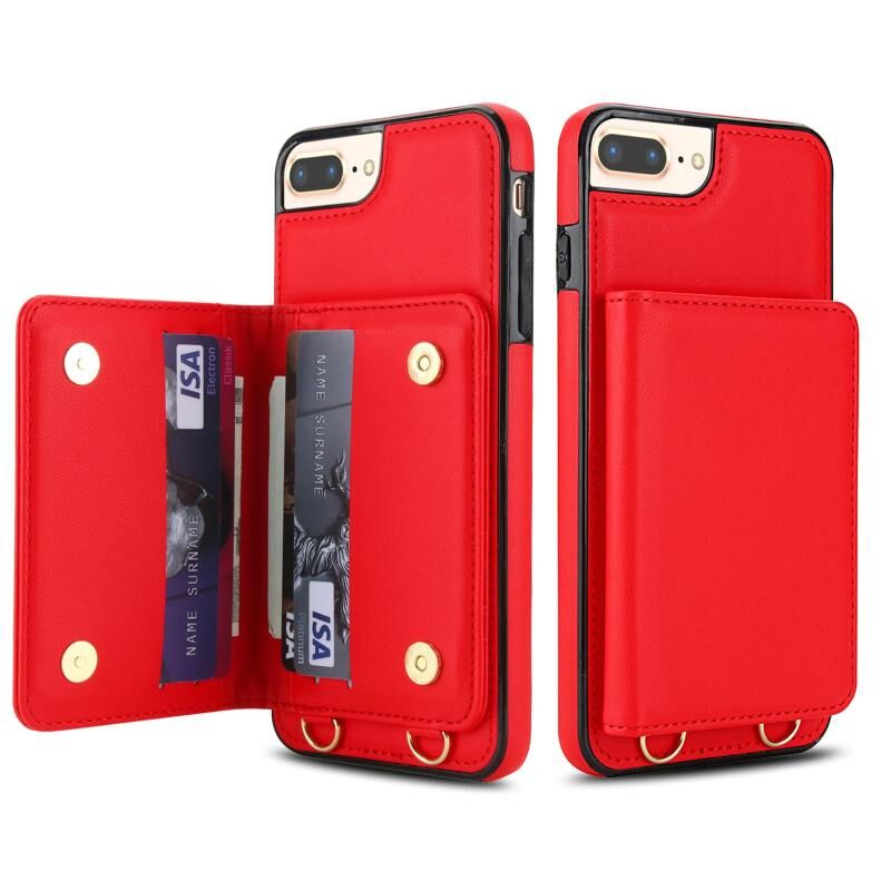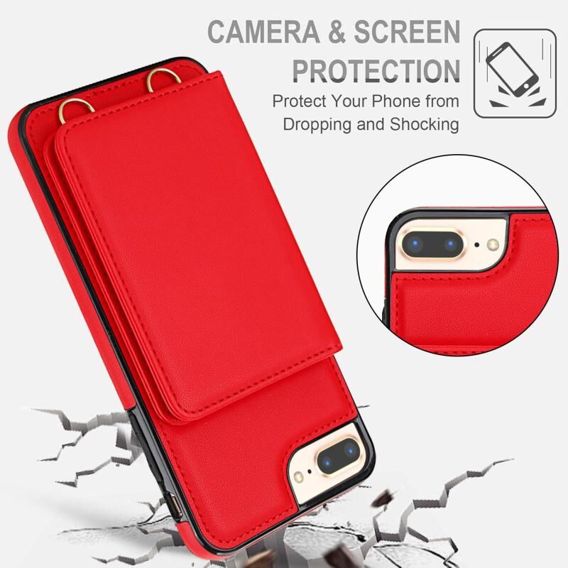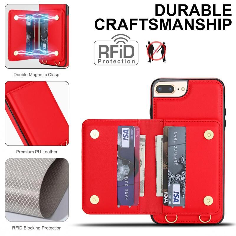 For iPhone 8 Plus / 7 Plus Crossbody Dual-buckle Wallet RFID Back Leather Phone Case(Red)