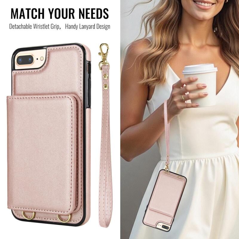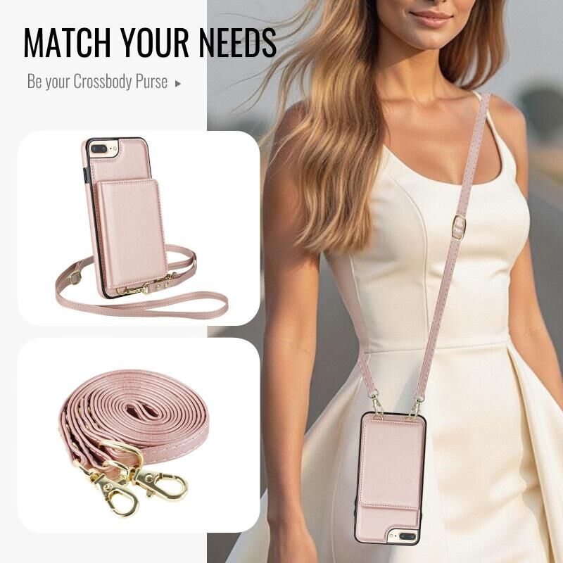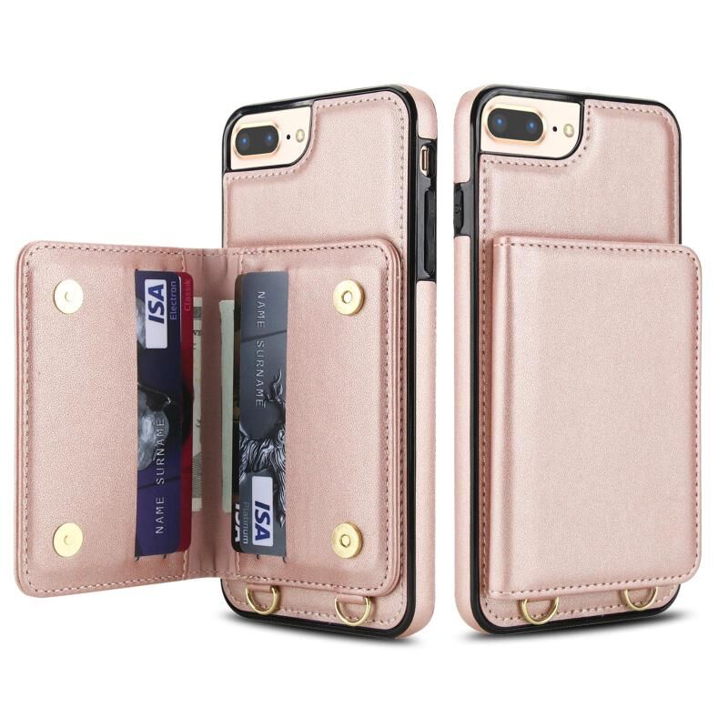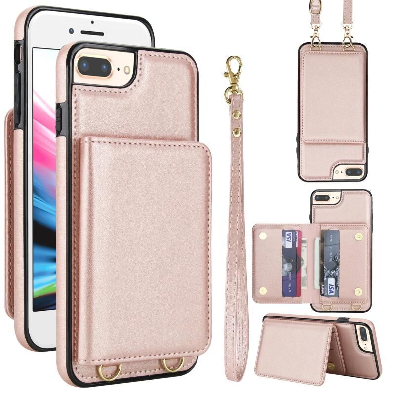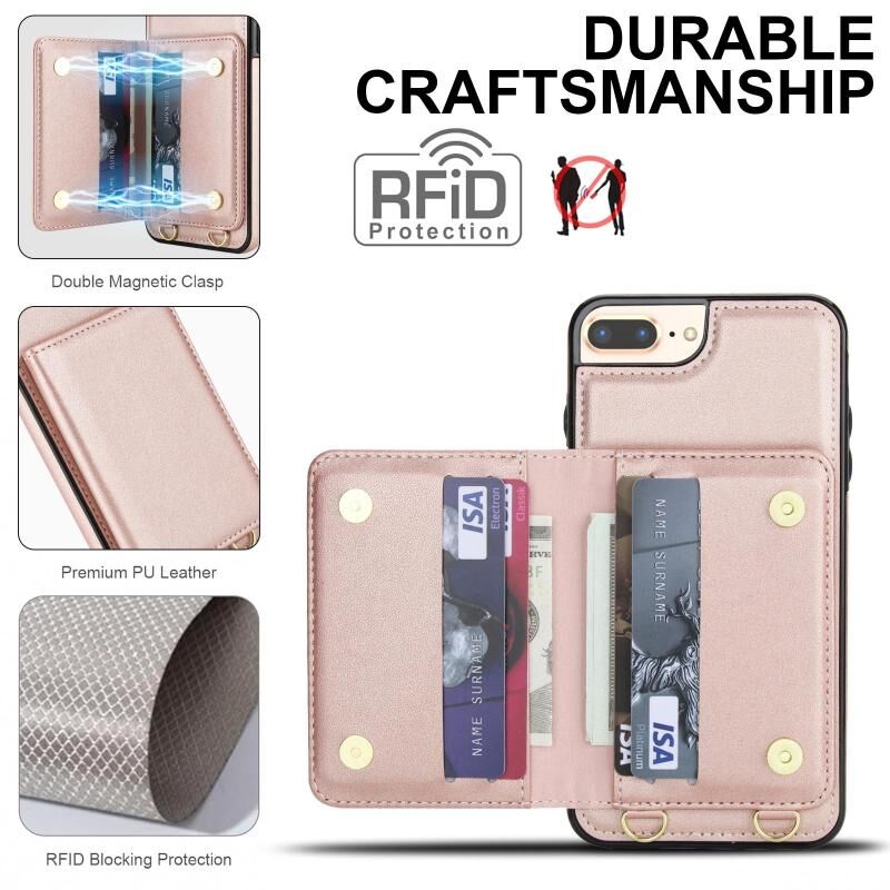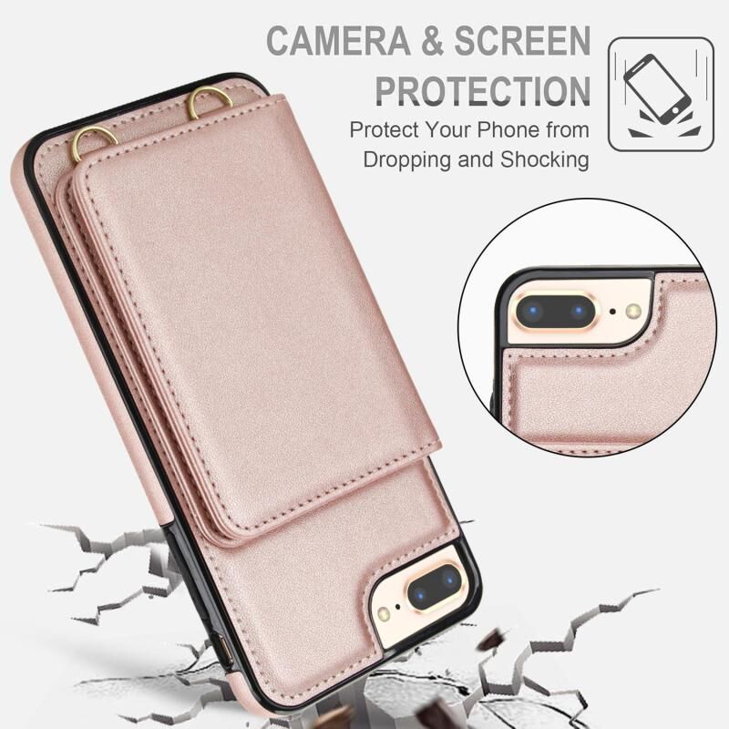 For iPhone 8 Plus / 7 Plus Crossbody Dual-buckle Wallet RFID Back Leather Phone Case(Rose Gold)