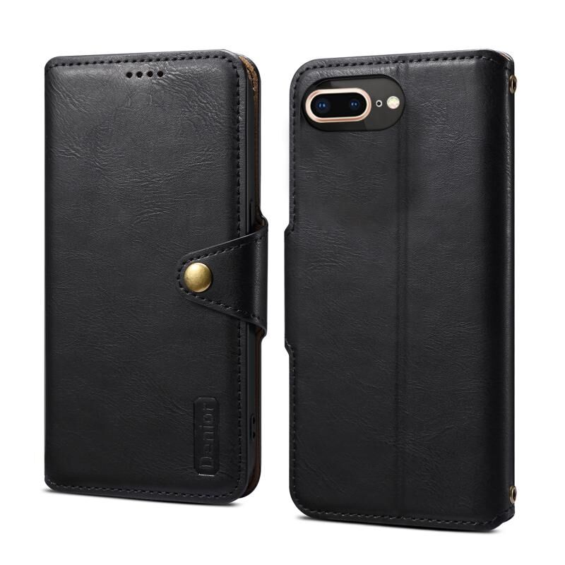 Θήκη τηλεφώνου δερμάτινη σε στυλ πορτοφολιού με υφή δέρματος αγελάδας Denior για iPhone 8 Plus / 7 Plus (Μαύρο) (Denior)