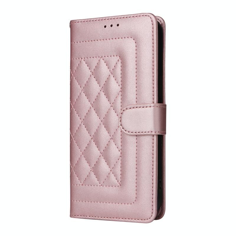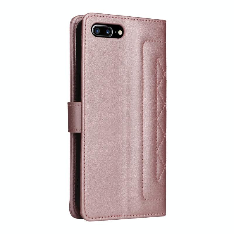 Θήκη τηλεφώνου τύπου flip από δέρμα με διαμαντένιο πλέγμα για iPhone 8 Plus / 7 Plus (Χρυσαφί Ρόδινο)
