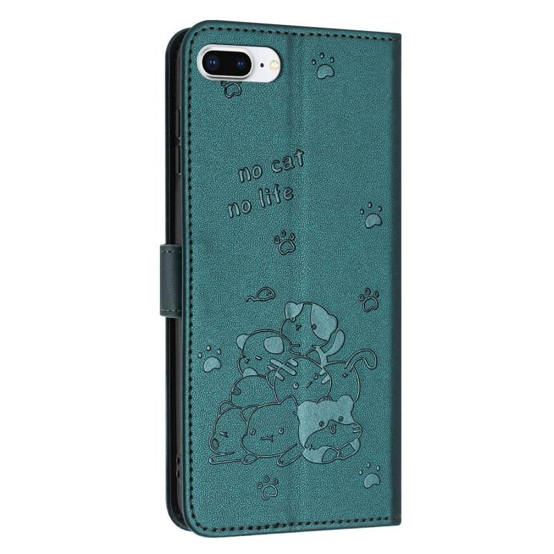 Θήκη δερμάτινη για iPhone 8 Plus / 7 Plus με ανάγλυφο γατάκι και κορδόνι (Μωβ)