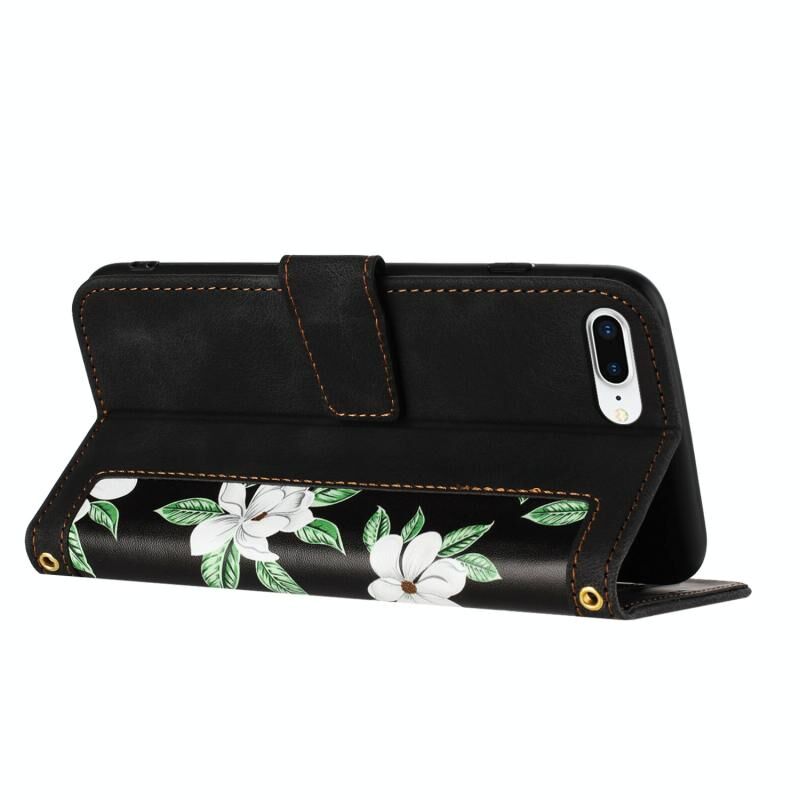 Θήκη τηλεφώνου από δέρμα με λουλουδάτο σχέδιο για iPhone 8 Plus / 7 Plus με κορδόνι (Ανοιχτό Μπλε)