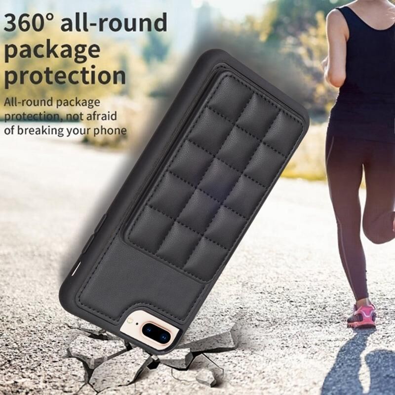 For iPhone 8 Plus / 7 Plus Grid Card Slot Holder Phone Case(Black)