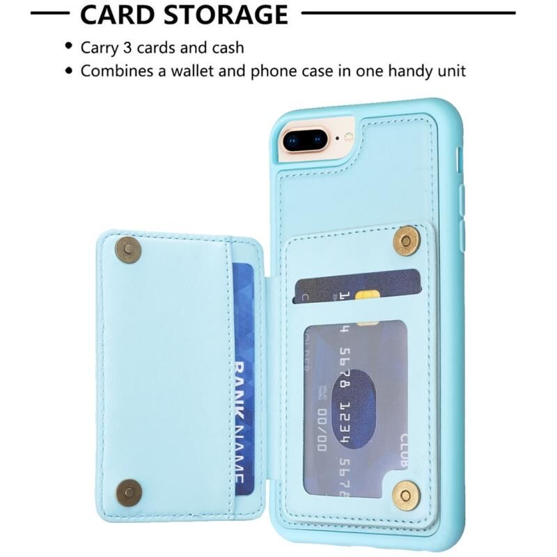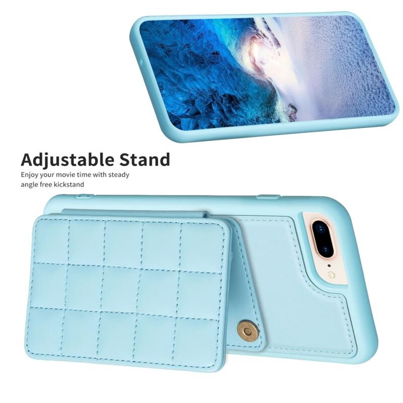 For iPhone 8 Plus / 7 Plus Grid Card Slot Holder Phone Case(Blue)