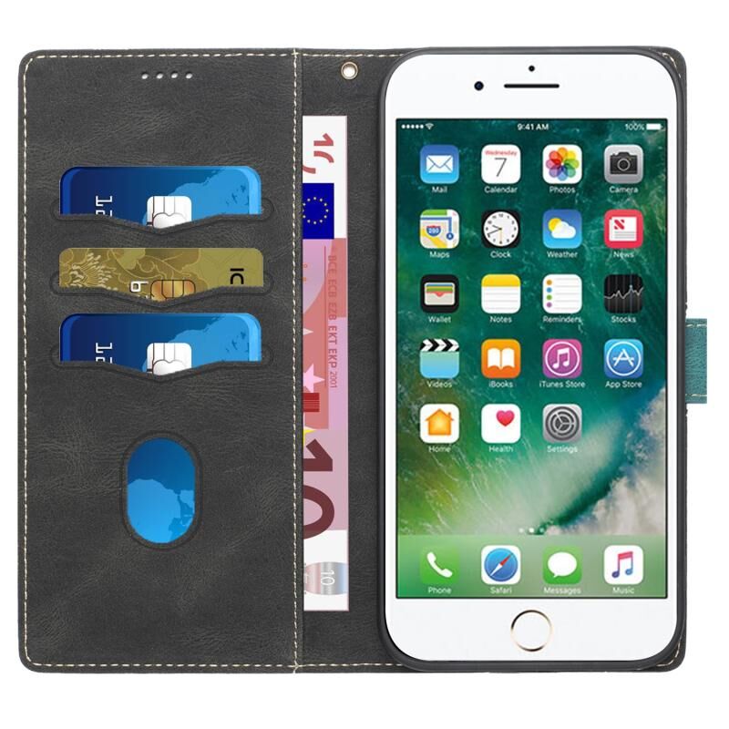 4. Λειτουργία Πορτοφολιού: Η δερμάτινη θήκη είναι εξοπλισμένη με υποδοχές καρτών για την τοποθέτηση καρτών και ενός μικρού ποσού μετρητών.