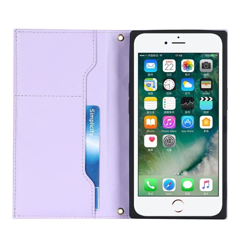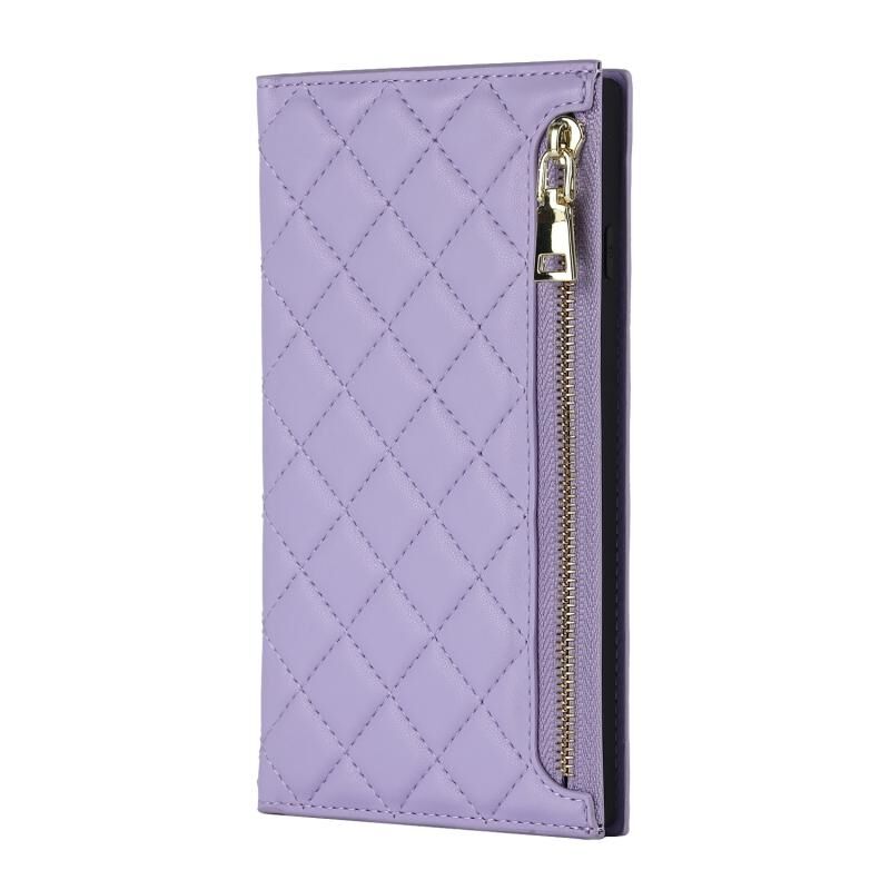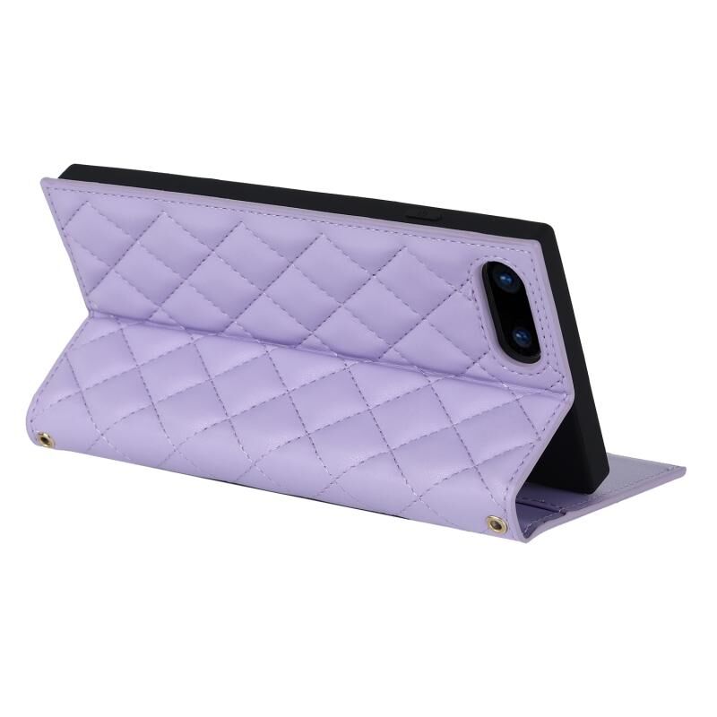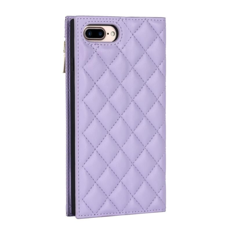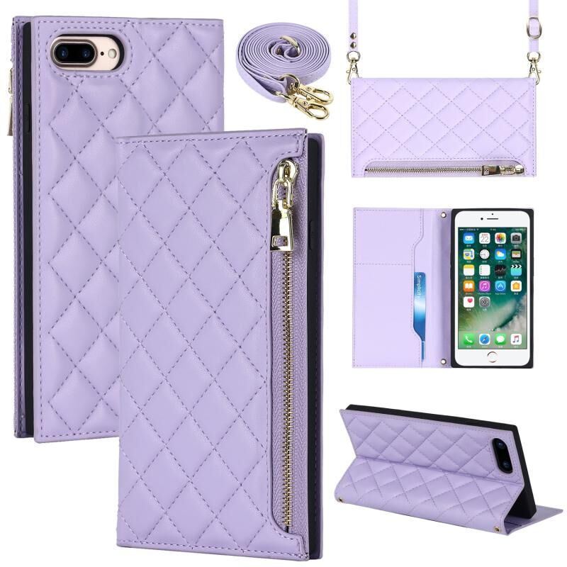 Θήκη τηλεφώνου από δέρμα με φερμουάρ και κορδόνι με υφή πλέγματος για iPhone 8 Plus / 7 Plus (Μωβ)