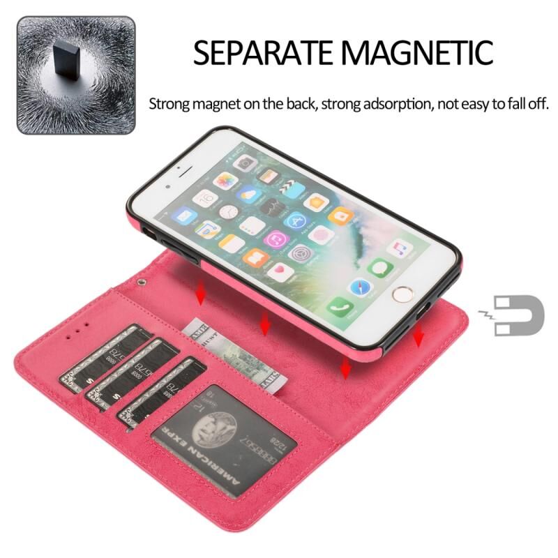 Για iPhone 8 Plus / 7 Plus KLT888-2 Ρετρό 2 σε 1 Αποσπώμενη Μαγνητική Οριζόντια Θήκη TPU + Δερμάτινη PU με Στήριξη & Θήκες Καρτών & Κορνίζα Φωτογραφιών & Πορτοφόλι (Κόκκινο Ρόδι)