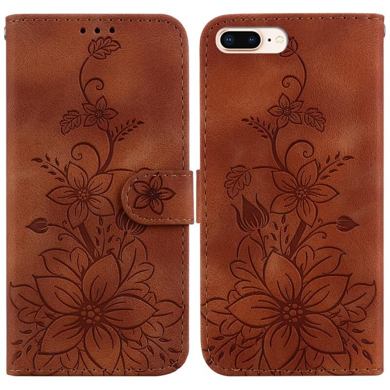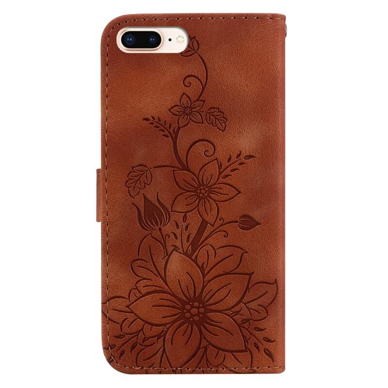 For iPhone 8 Plus / 7 Plus Lily Embossed Leather Phone Case(Brown)