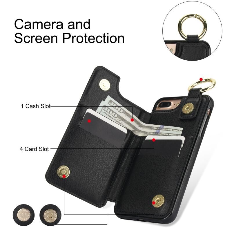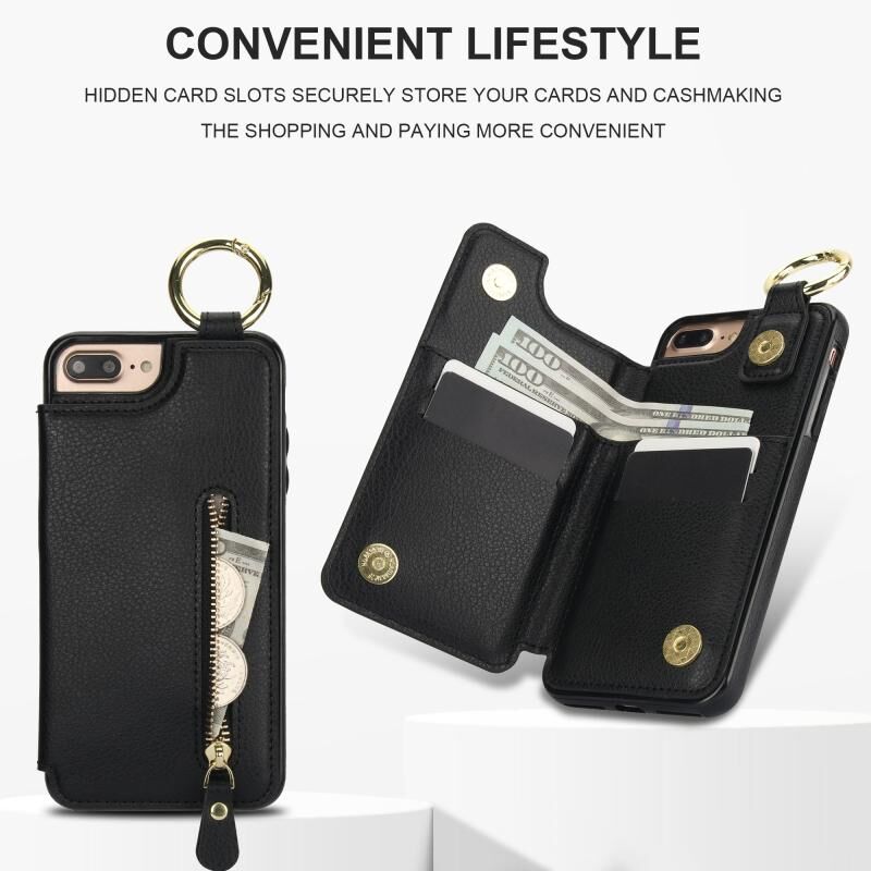 Για το iPhone 8 Plus / 7 Plus Litchi υφή φερμουάρ διπλή πόρπη κάρτα τσάντα υπόθεση τηλεφώνου (μαύρο)