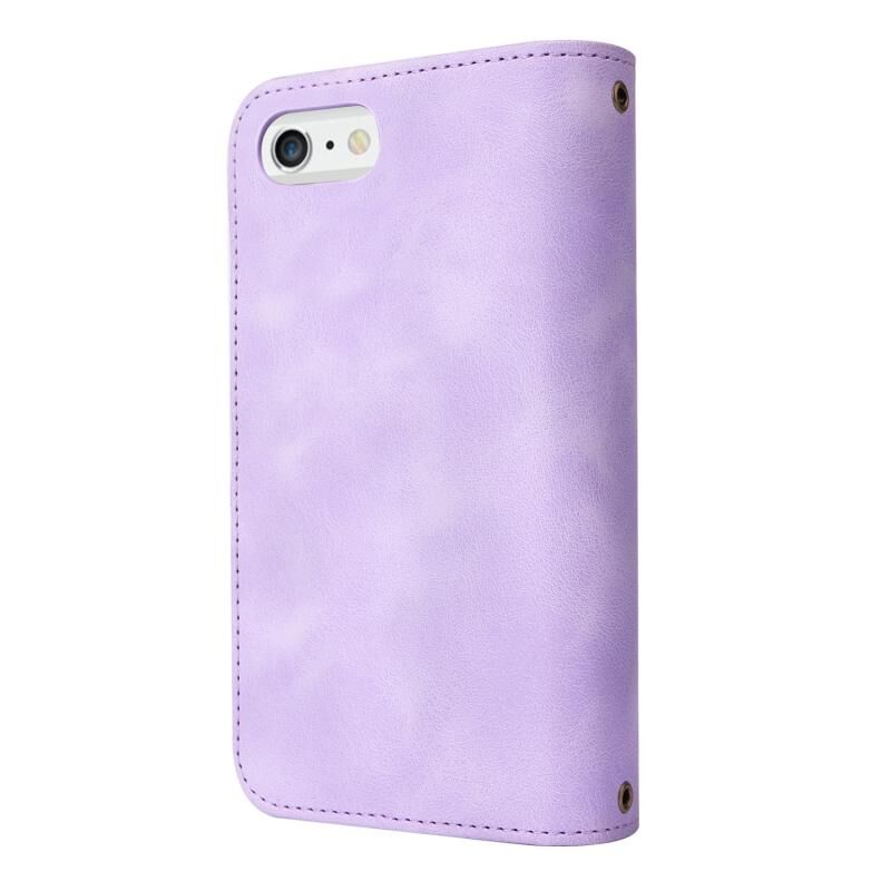 Θήκη τηλεφώνου από δέρμα με πολλαπλές λειτουργίες, θήκη καρτών και φερμουάρ για iPhone 8 Plus / 7 Plus (Μαύρο)