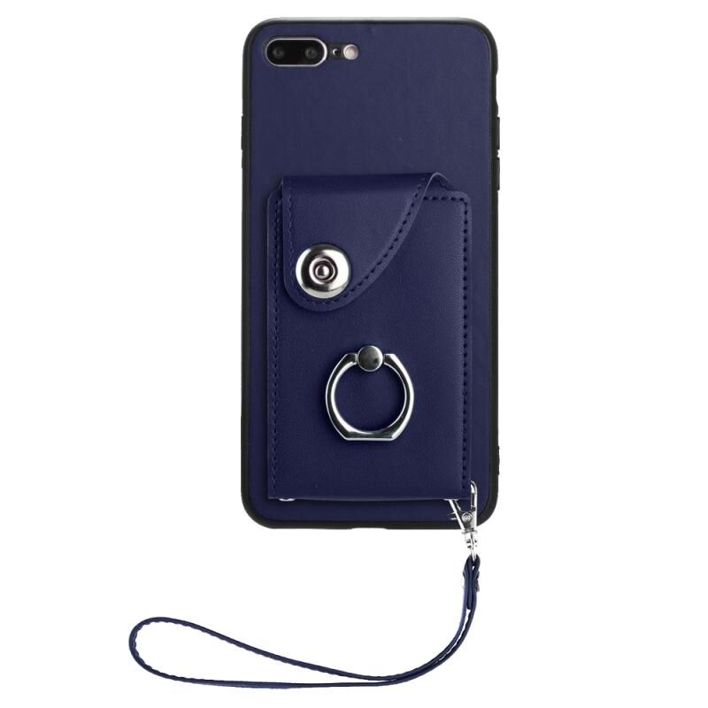 Θήκη κινητού τηλεφώνου από PU με δακτύλιο συγκράτησης και λουρί για iPhone 8 Plus / 7 Plus (Μπλε)