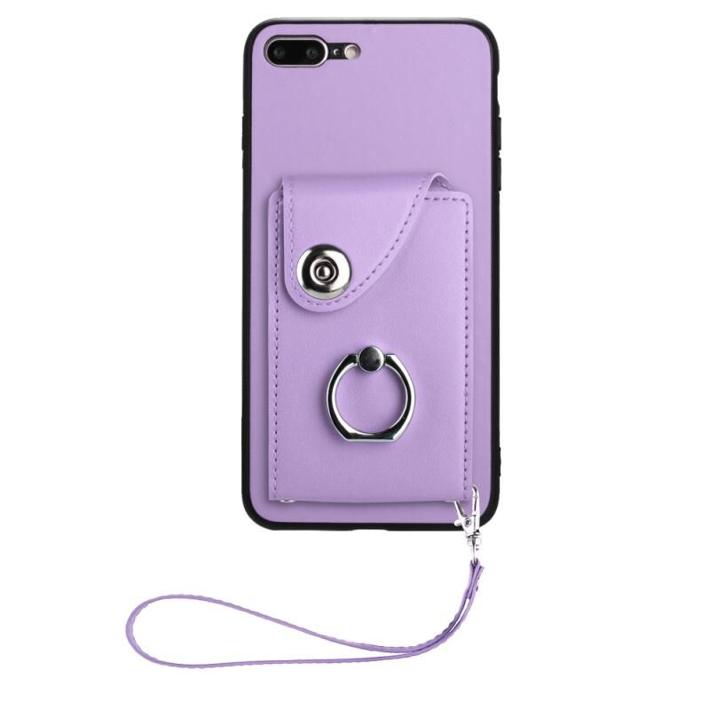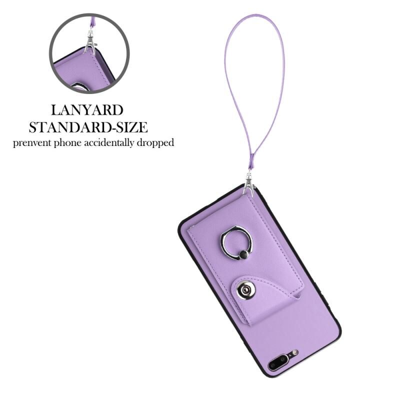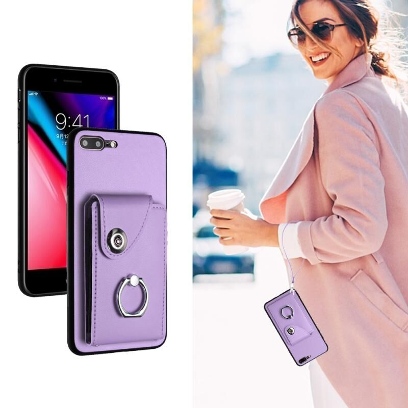 Θήκη κινητού τηλεφώνου από PU με δακτύλιο συγκράτησης και λουρί για iPhone 8 Plus / 7 Plus (Μπλε)