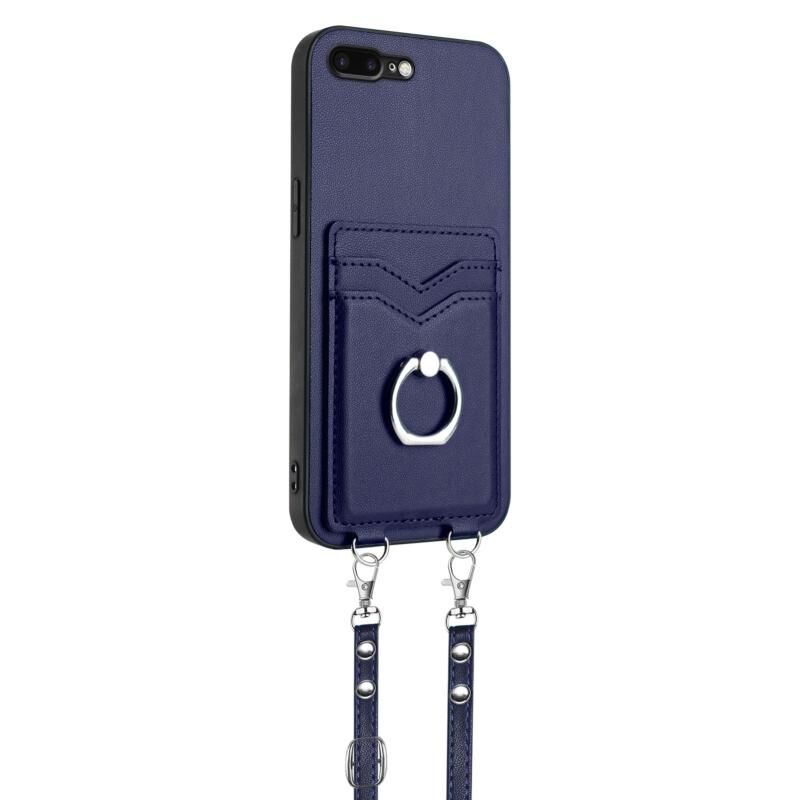 Θήκη τηλεφώνου για iPhone 8 Plus / 7 Plus R20 με κορδόνι, δακτύλιο και θήκη για κάρτες (Ροζ)