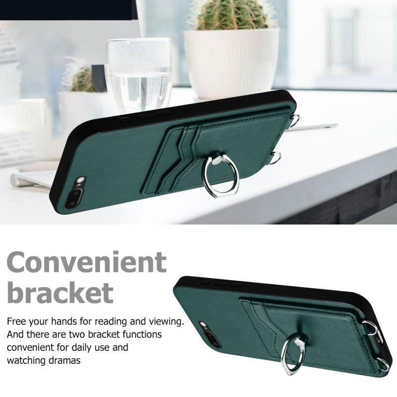 Θήκη τηλεφώνου για iPhone 8 Plus / 7 Plus R20 με κορδόνι, δακτύλιο και θήκη για κάρτες (Ροζ)