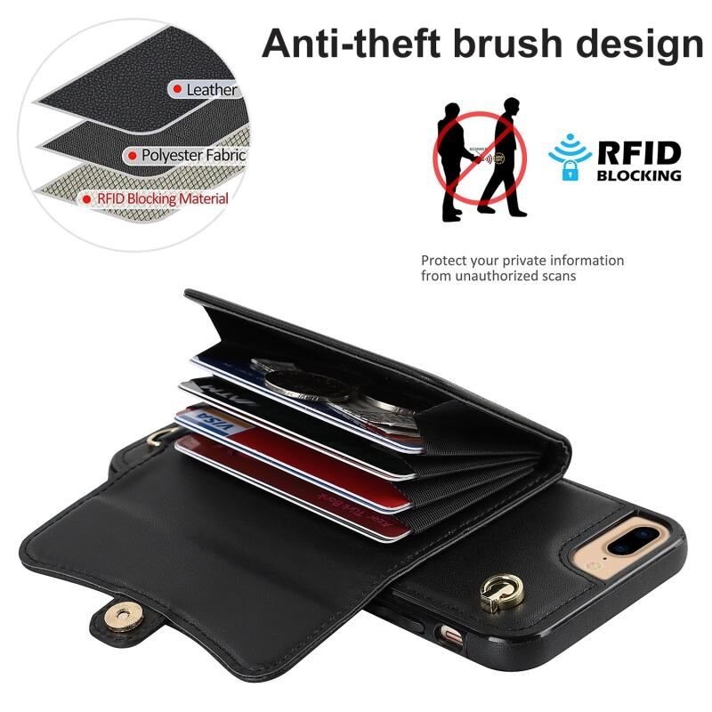 Θήκη κινητού τηλεφώνου με υποδοχή κάρτας RFID για iPhone 8 Plus / 7 Plus με μακρύ κορδόνι (Μαύρο)