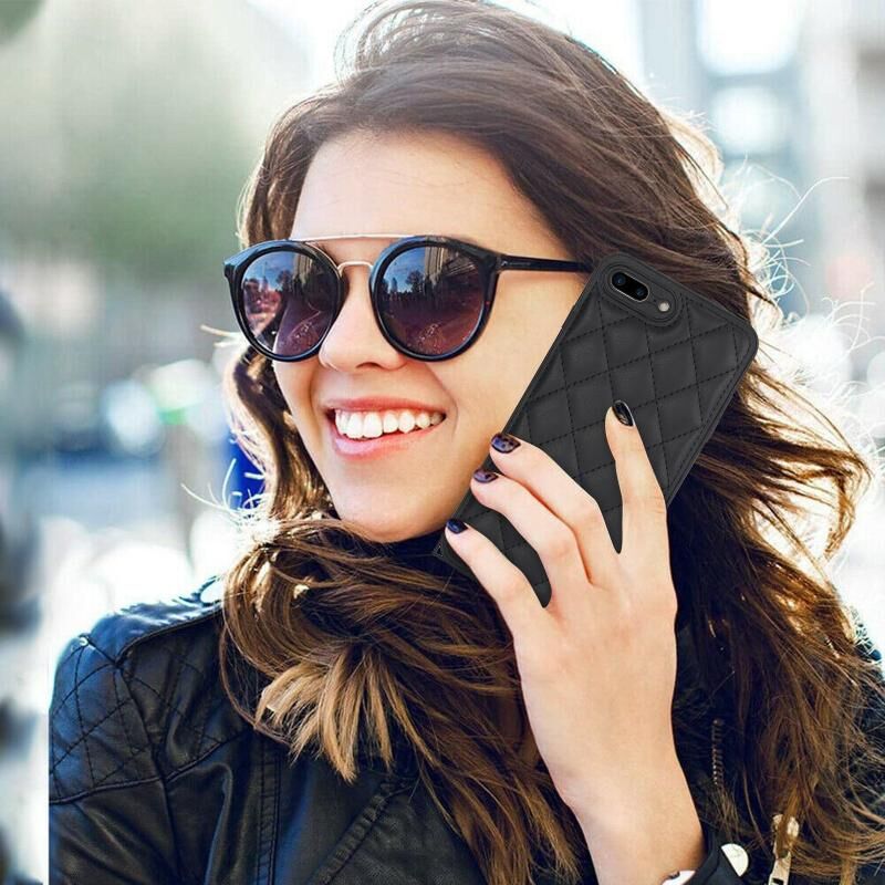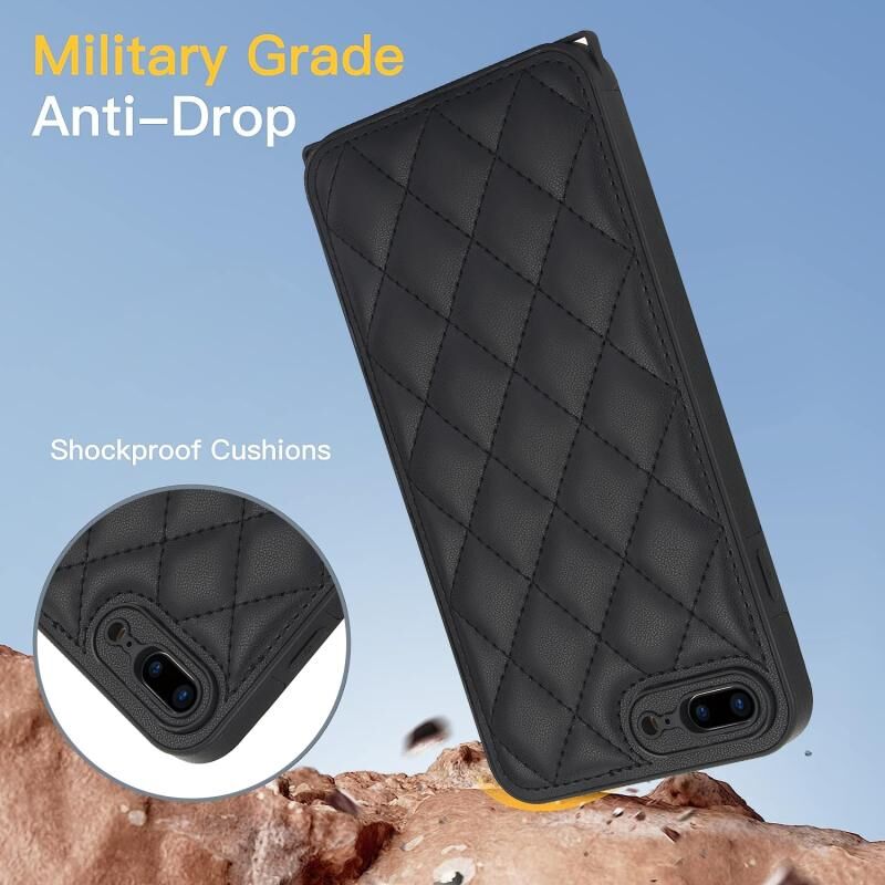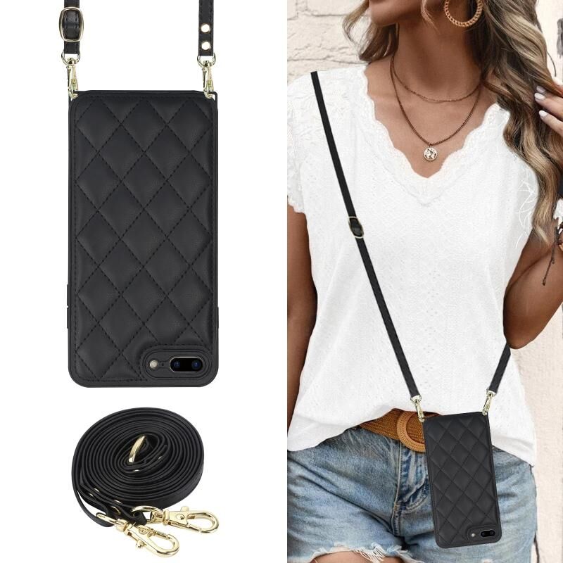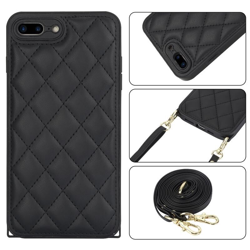 Θήκη τηλεφώνου με υφή ρόμβου για iPhone 8 Plus / 7 Plus με διπλό κορδόνι (Λευκό)