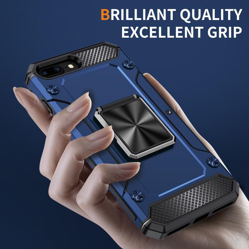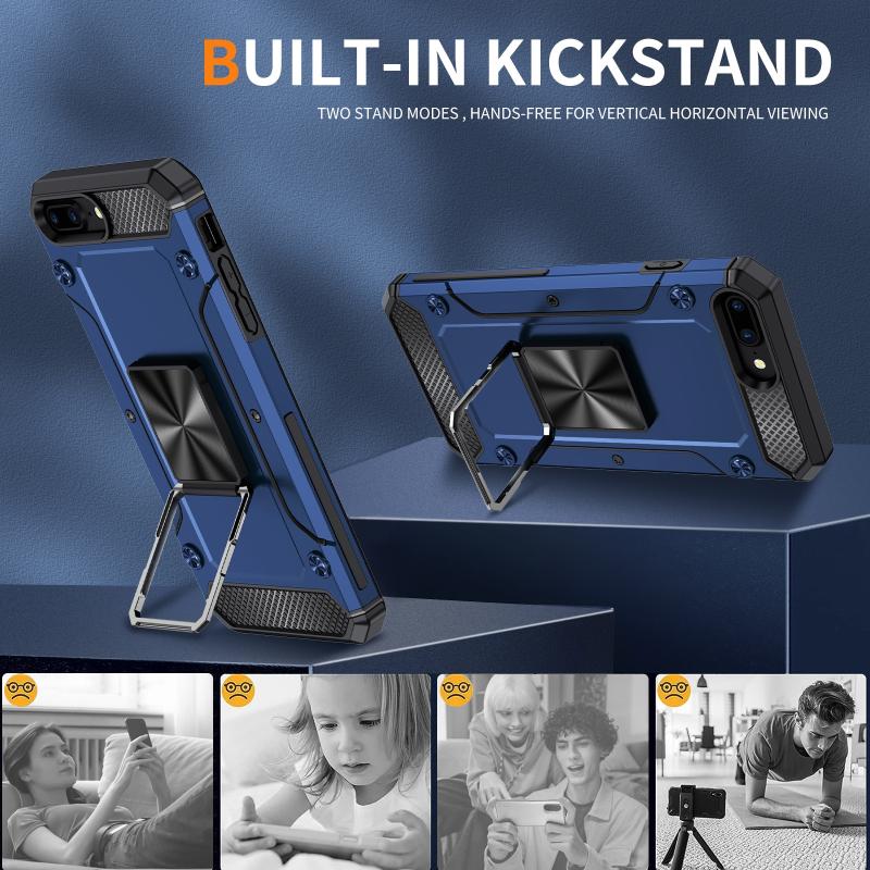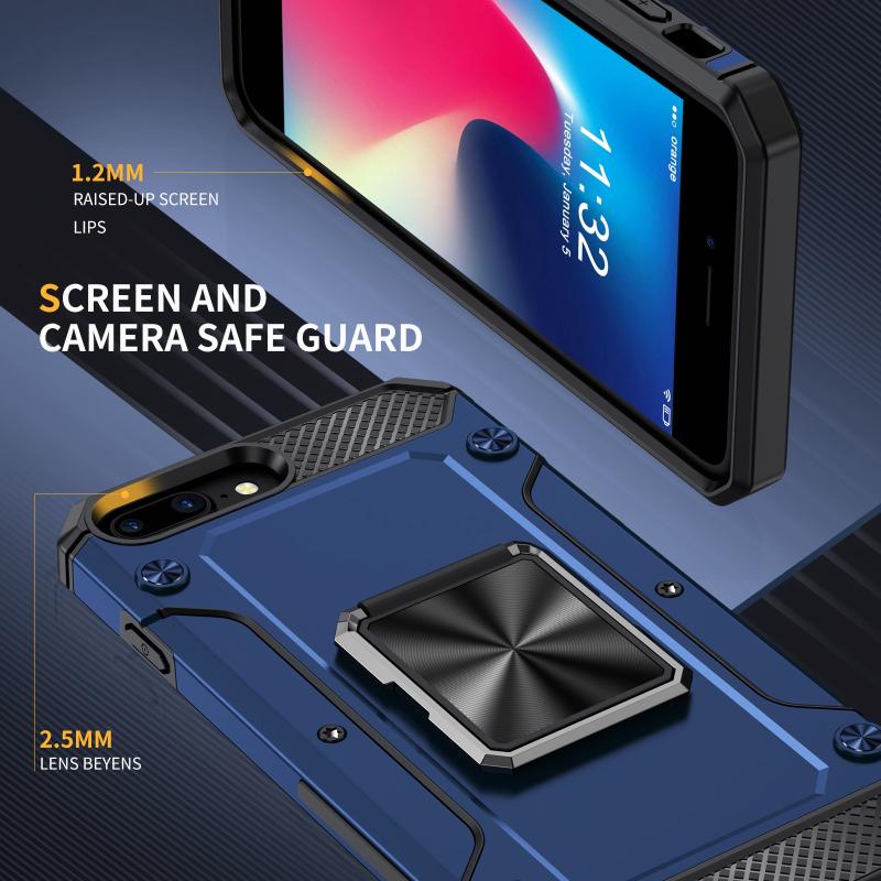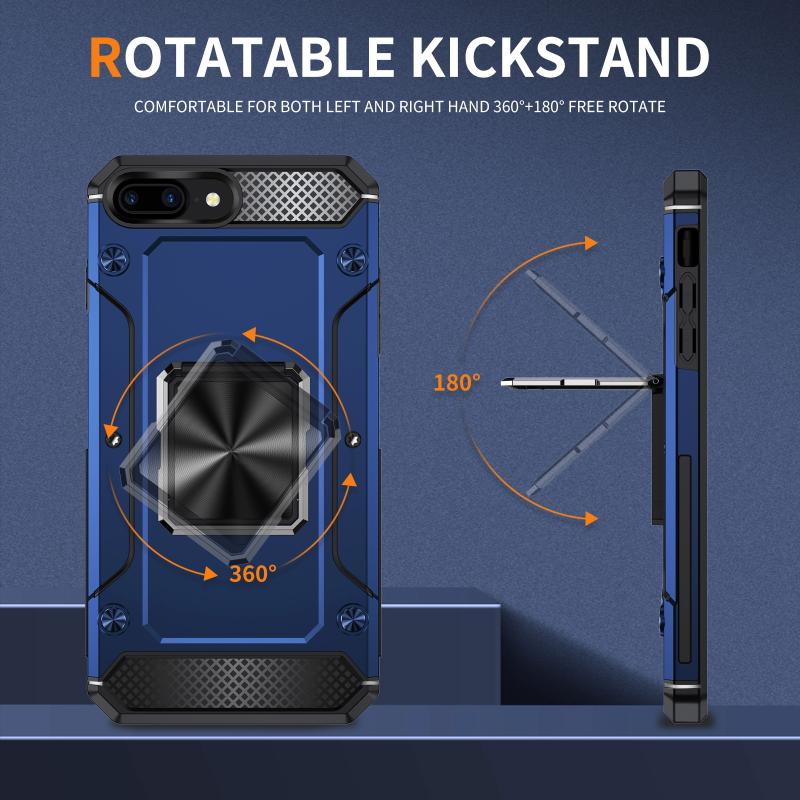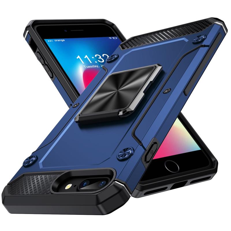 For iPhone 8 Plus / 7 Plus Shockproof Metal Holder Phone Case(Blue)