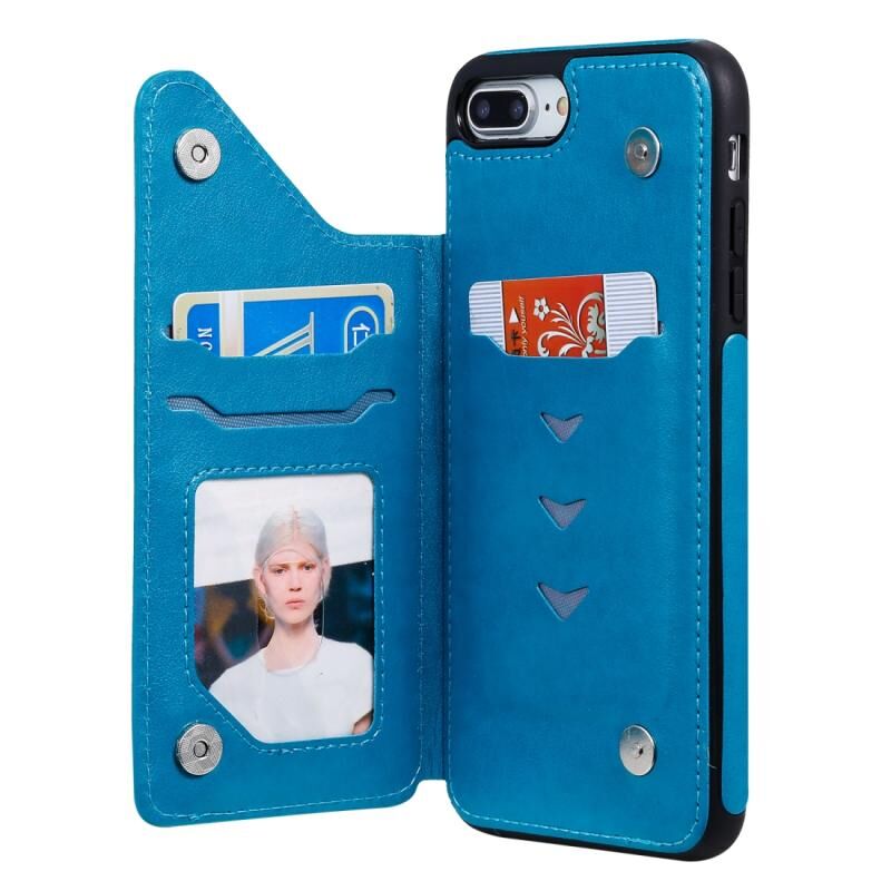 Θήκη προστασίας για iPhone 8 Plus / 7 Plus με ανάγλυφο σχέδιο κρανίου, αντικραδασμική με βάση στήριξης & θήκες για κάρτες & πορτοφόλι (Μπλε)