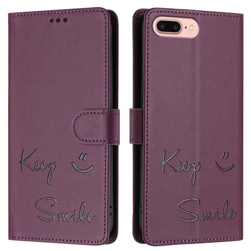 Θήκη τηλεφώνου από δέρμα με ανάγλυφο χαμόγελο για iPhone 8 Plus / 7 Plus (Βιολετί)