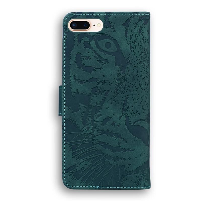 Θήκη δέρματος οριζόντιας αναδίπλωσης με ανάγλυφο μοτίβο τίγρης για iPhone 8 Plus / 7 Plus με βάση & υποδοχές καρτών & πορτοφόλι (Μαύρο)