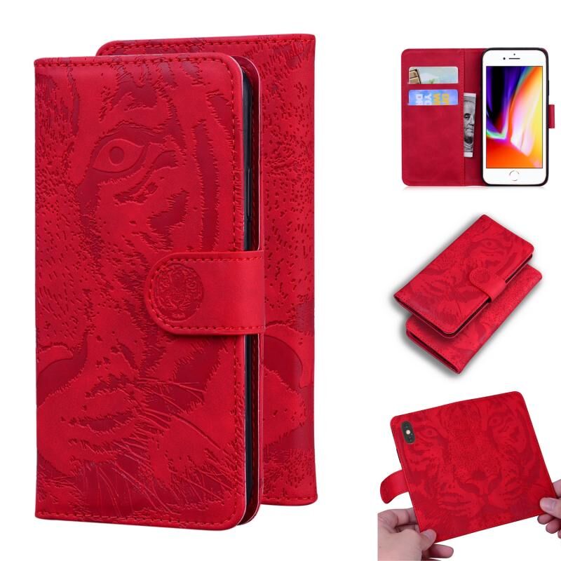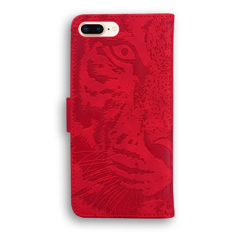 Θήκη δέρματος οριζόντιας αναδίπλωσης με ανάγλυφο μοτίβο τίγρης για iPhone 8 Plus / 7 Plus με βάση & υποδοχές καρτών & πορτοφόλι (Μαύρο)