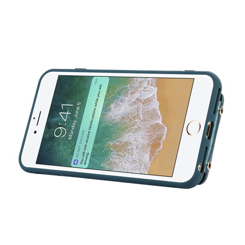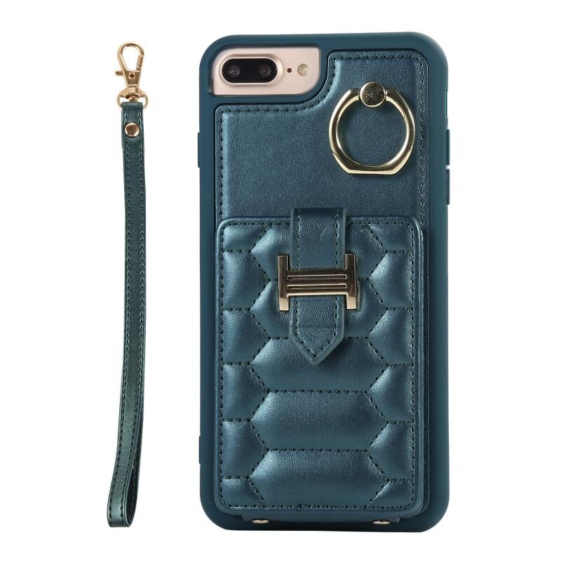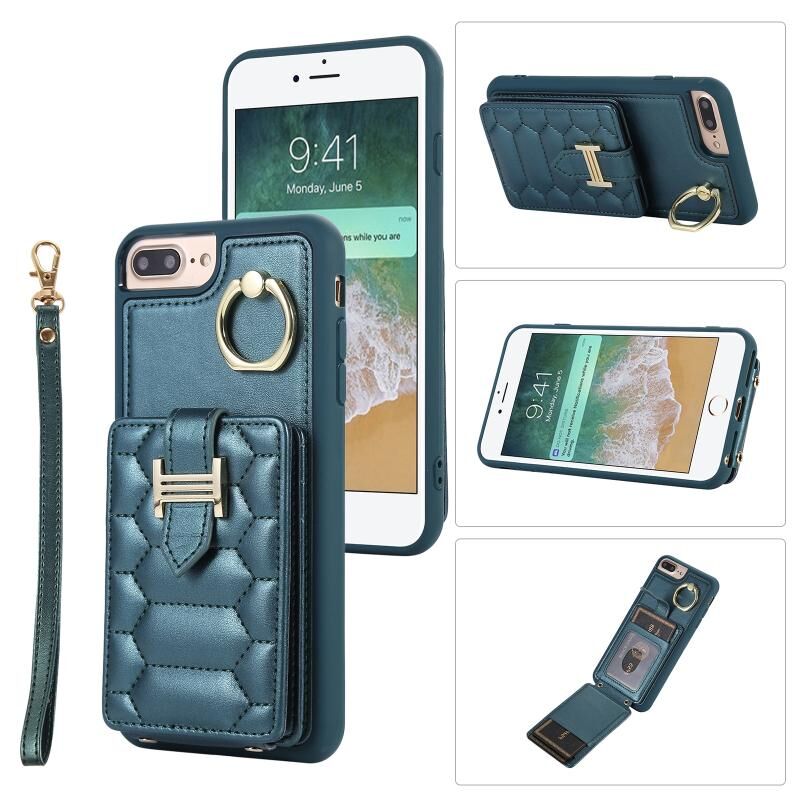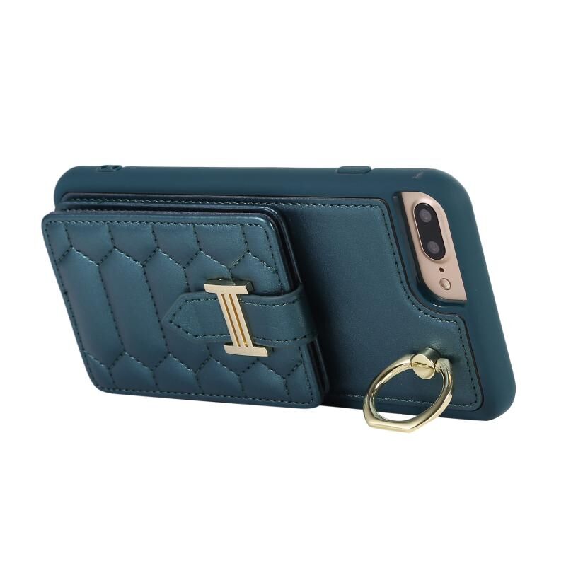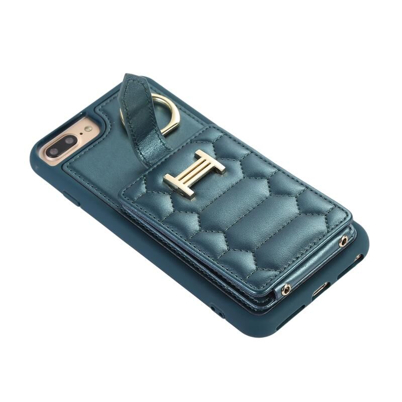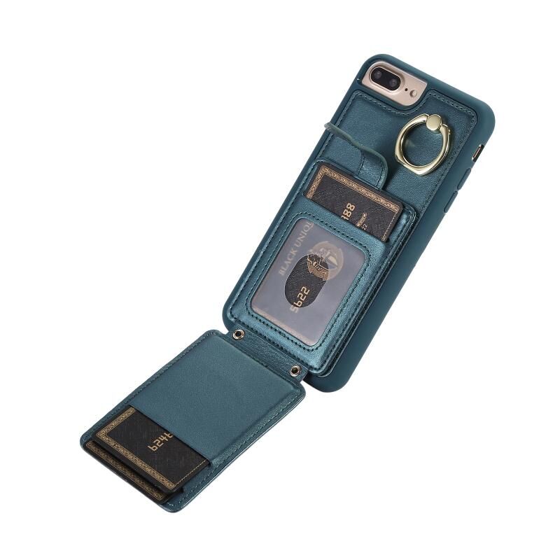 For iPhone 8 Plus / 7 Plus Vertical Card Bag Ring Holder Phone Case with Dual Lanyard(Dark Green)