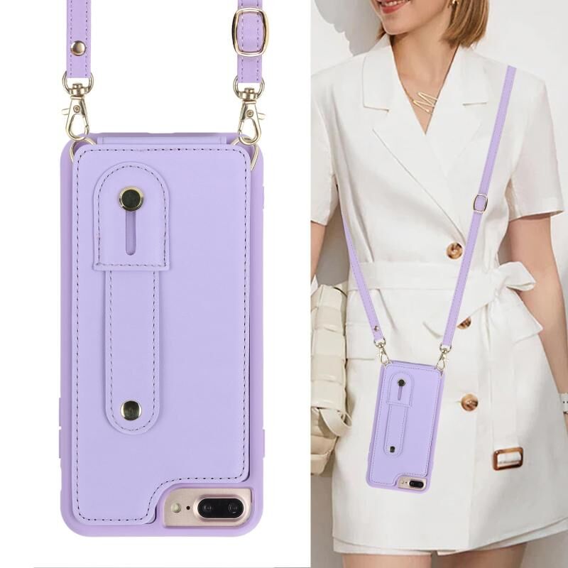 Για iPhone 8 Plus / 7 Plus Βραχιόλι Κάθετη Θήκη Πορτοφολιού Πίσω Κάλυμμα Θήκης Τηλεφώνου με Μακρύ Λουρί (Μαύρο)