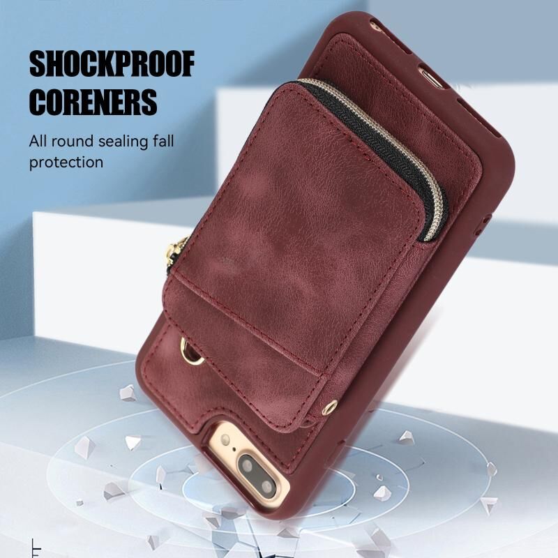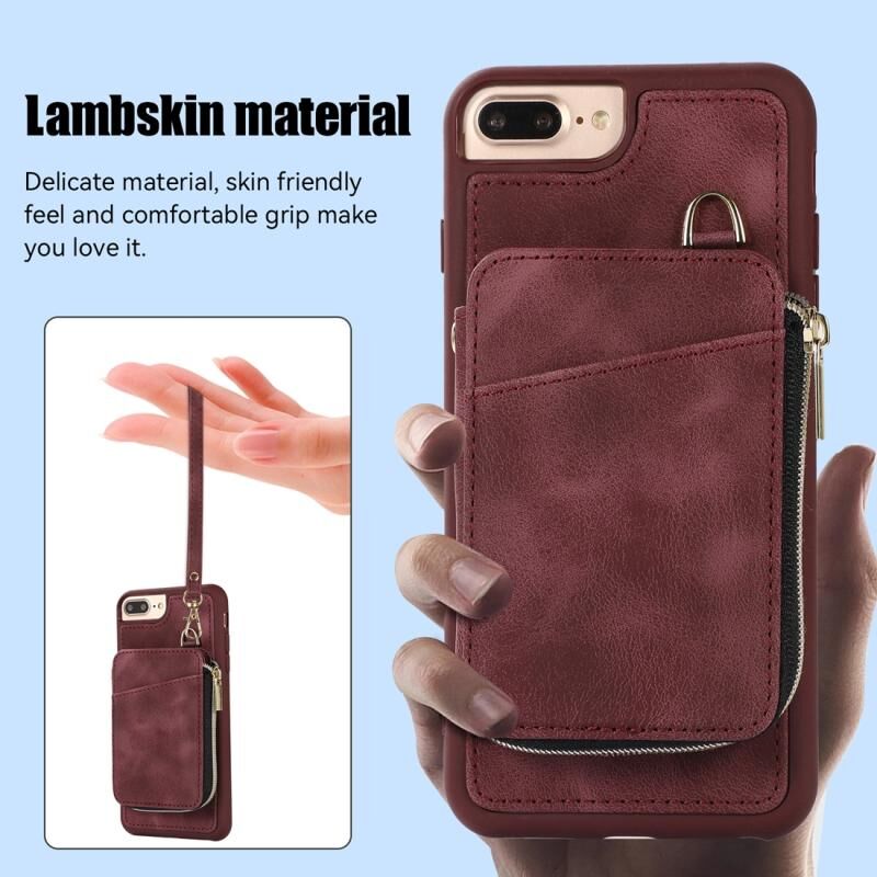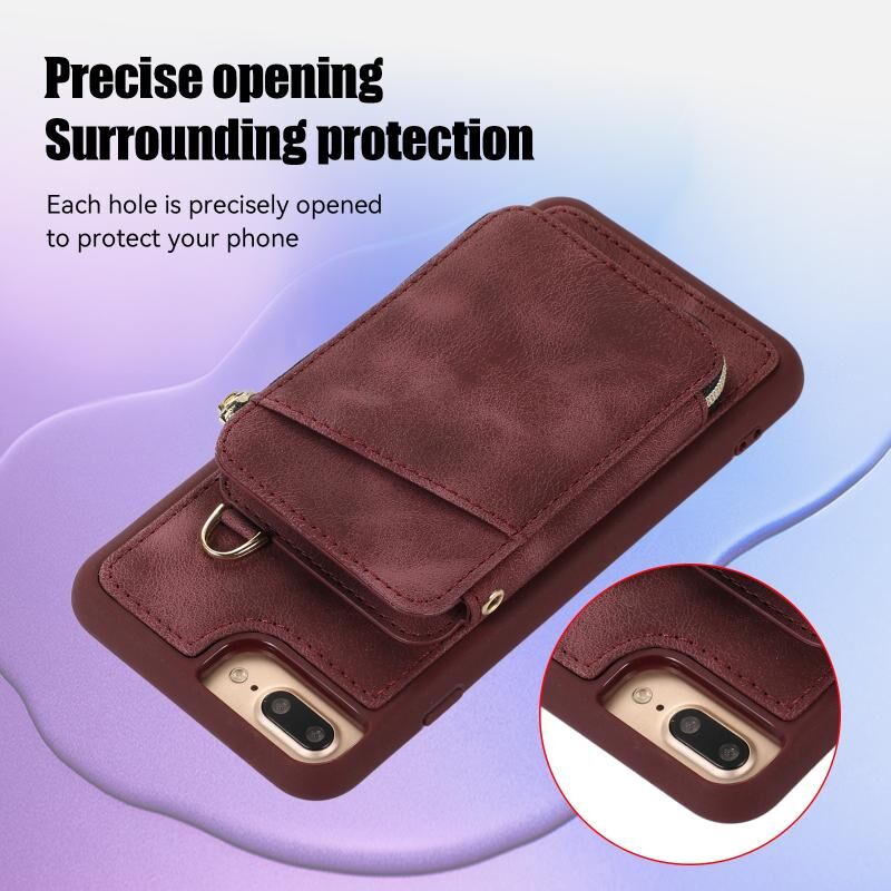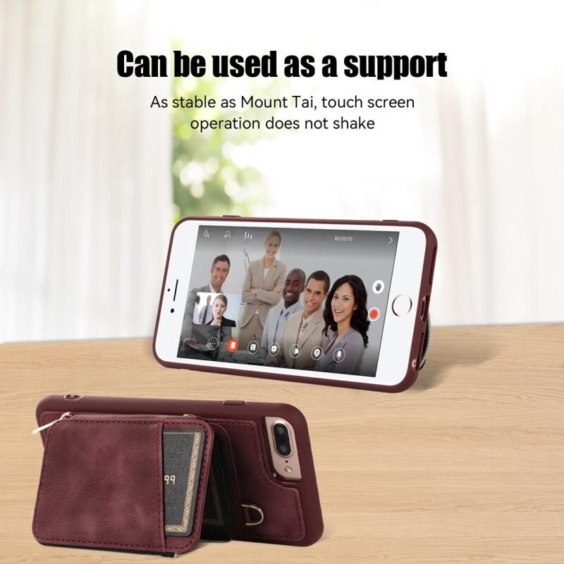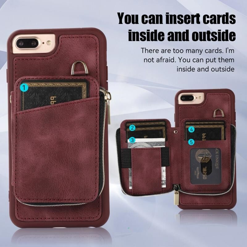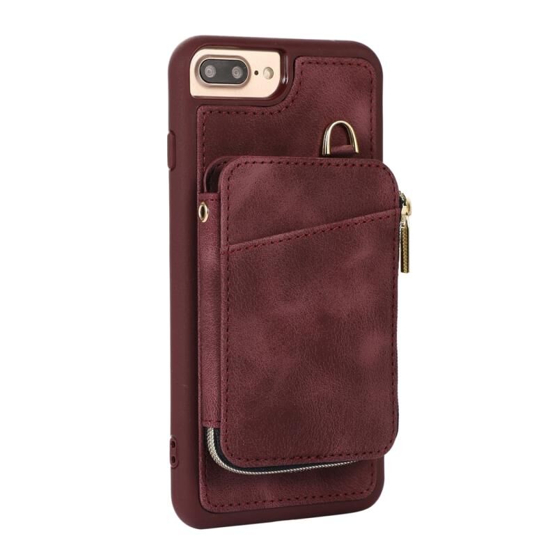 For iPhone 8 Plus / 7 Plus Zipper Card Bag Back Cover Phone Case(Wine Red)