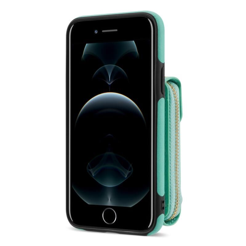 For iPhone 8 Plus / 7 Plus Zipper Hardware Card Wallet Phone Case(Mint Green)