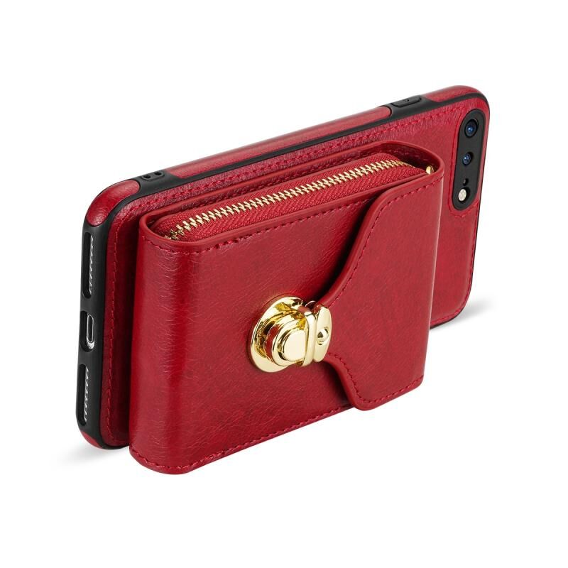 For iPhone 8 Plus / 7 Plus Zipper Hardware Card Wallet Phone Case(Red)