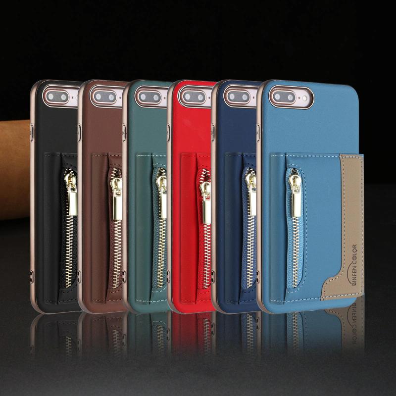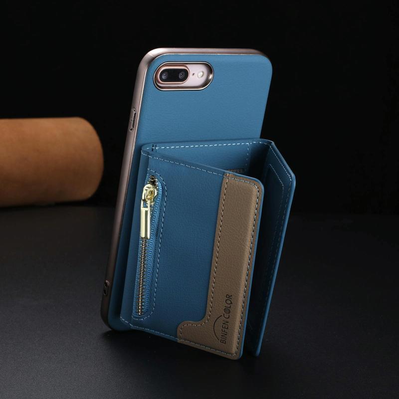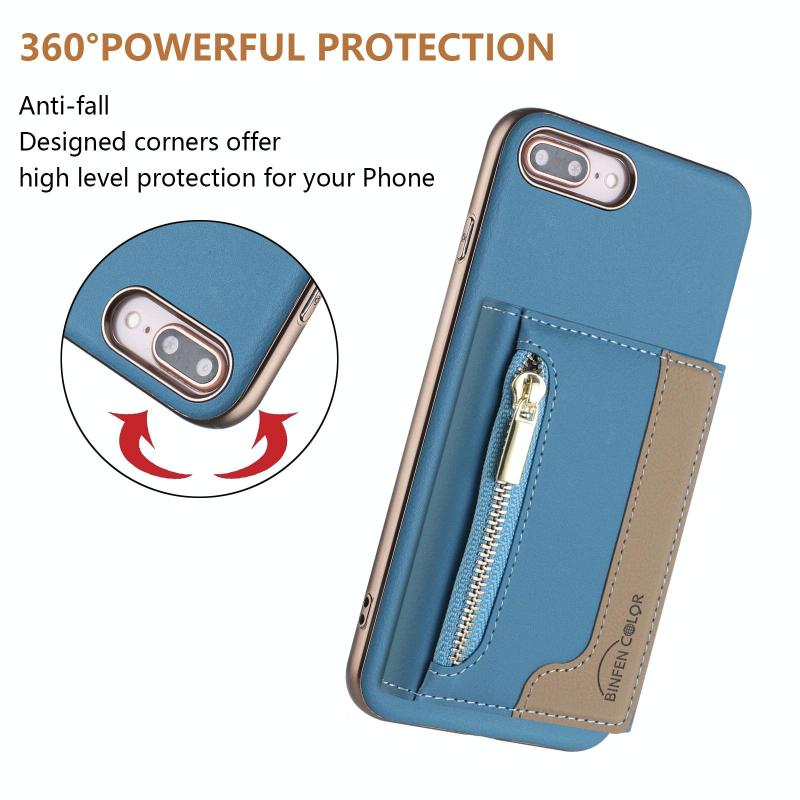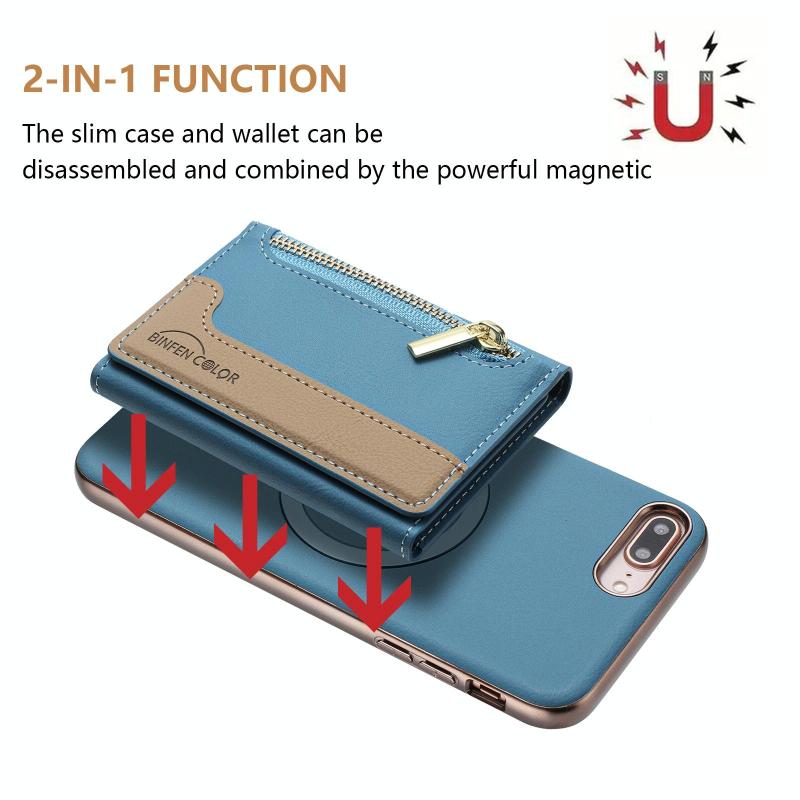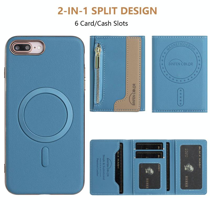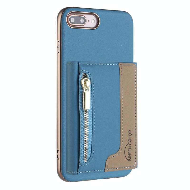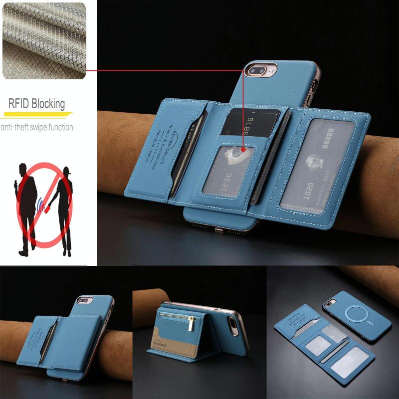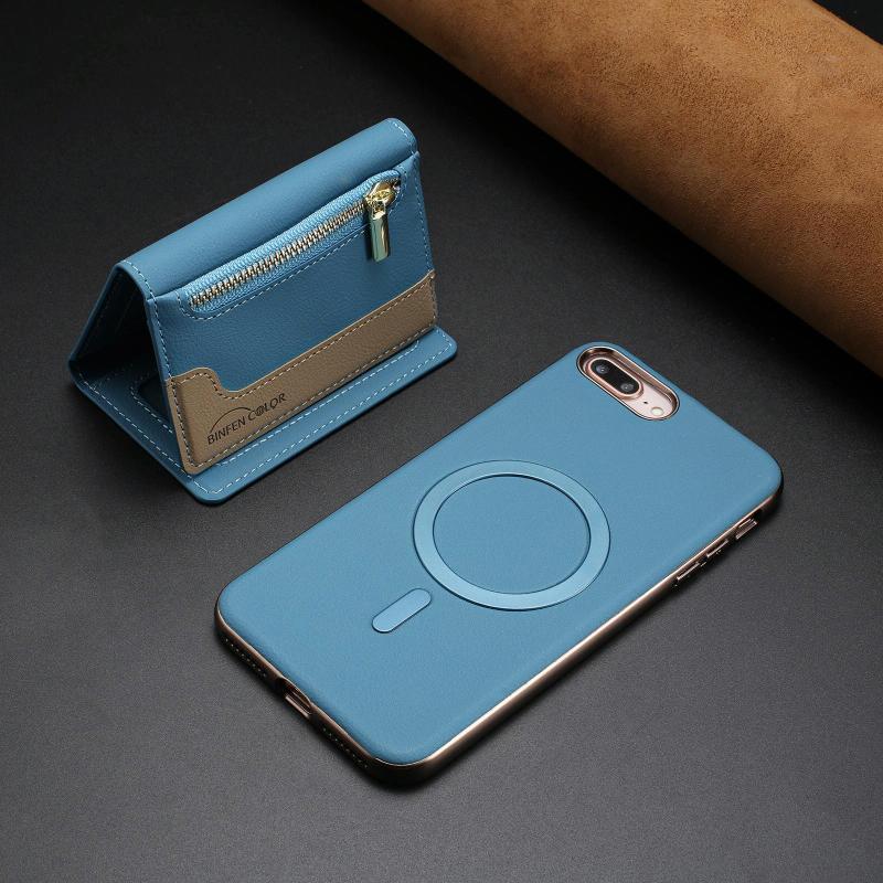 For iPhone 8 Plus / 7 Plus Zipper Horizontal Magnetic Card Bag RFID MagSafe Phone Case(Baby Blue)