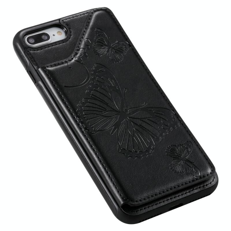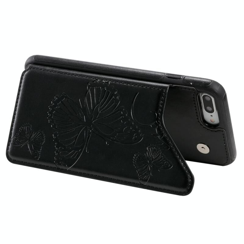 Θήκη προστασίας για iPhone 8 Plus & 7 Plus με ανάγλυφο σχέδιο πεταλούδας, αντικραδασμική, με βάση στήριξης & θήκες για κάρτες & κορνίζα φωτογραφίας (Μαύρο)