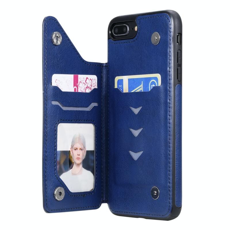 Θήκη για iPhone 8 Plus & 7 Plus με σχέδιο ανάγλυφου γατιού, αντικραδασμική προστατευτική με θήκες για κάρτες & κορνίζα φωτογραφιών & βάση στήριξης (Μπλε)