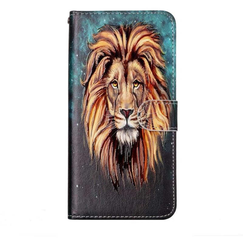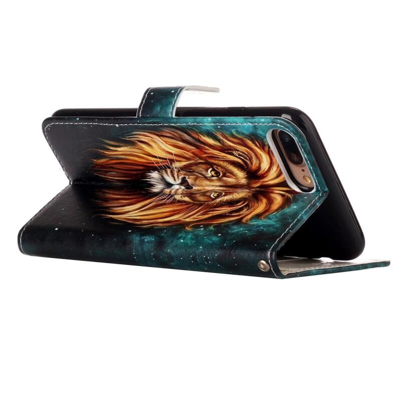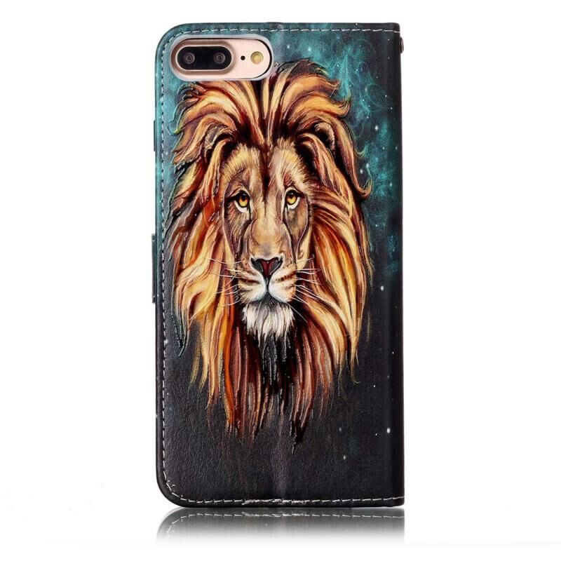Θήκη δέρματος οριζόντιας αναδίπλωσης με ανάγλυφο σχέδιο λιονταριού & ελέφαντα για iPhone 8 Plus & 7 Plus, με βάση στήριξης & θήκες καρτών & πορτοφόλι & κορνίζα φωτογραφιών.