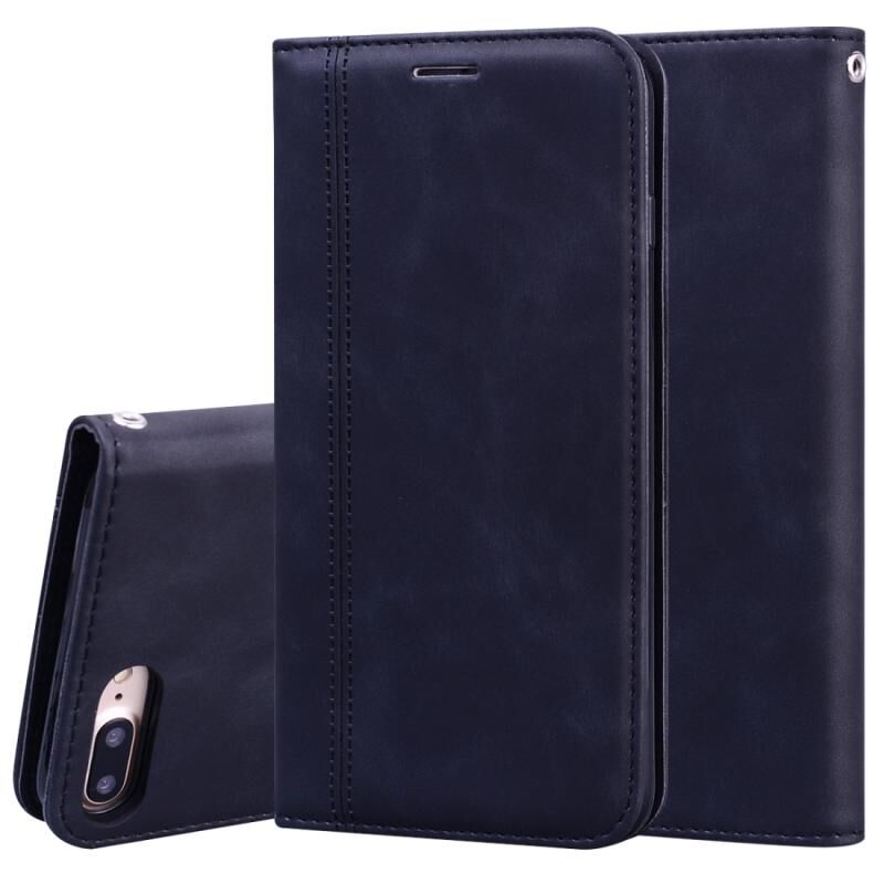 For iPhone 8 Plus & 7 Plus Frosted Business Magnetic Horizontal Flip PU Leather Case with Holder & Card Slot & Lanyard(Black)