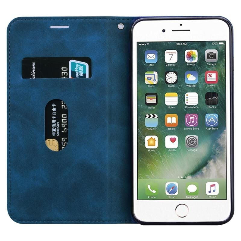 For iPhone 8 Plus & 7 Plus Frosted Business Magnetic Horizontal Flip PU Leather Case with Holder & Card Slot & Lanyard(Blue)