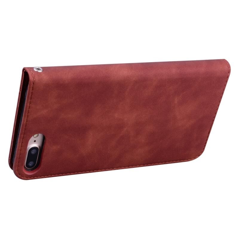 For iPhone 8 Plus & 7 Plus Frosted Business Magnetic Horizontal Flip PU Leather Case with Holder & Card Slot & Lanyard(Brown)