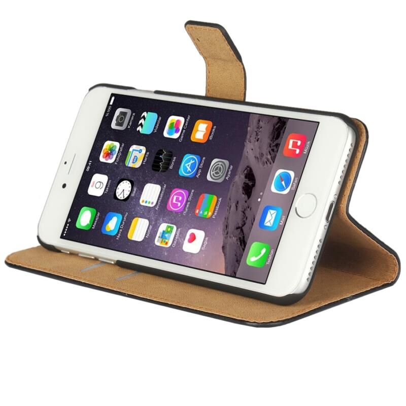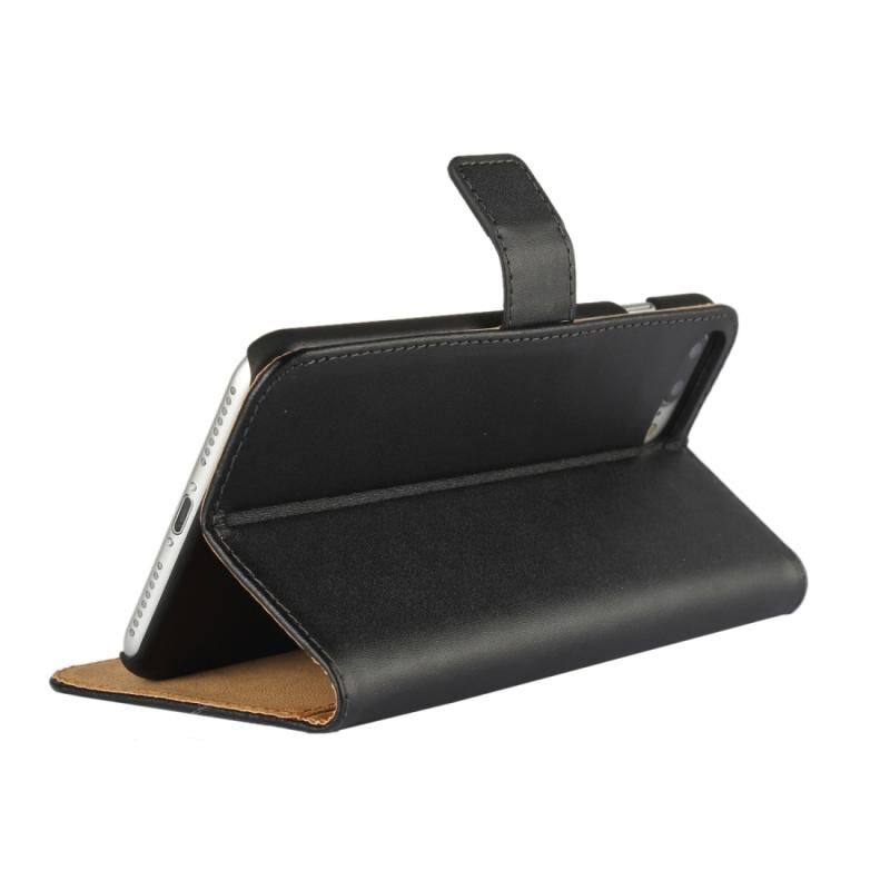 Γνήσια δερμάτινη θήκη flip οριζόντιας διαίρεσης για iPhone 8 Plus & 7 Plus με βάση & υποδοχές καρτών & πορτοφόλι (Μαύρο)