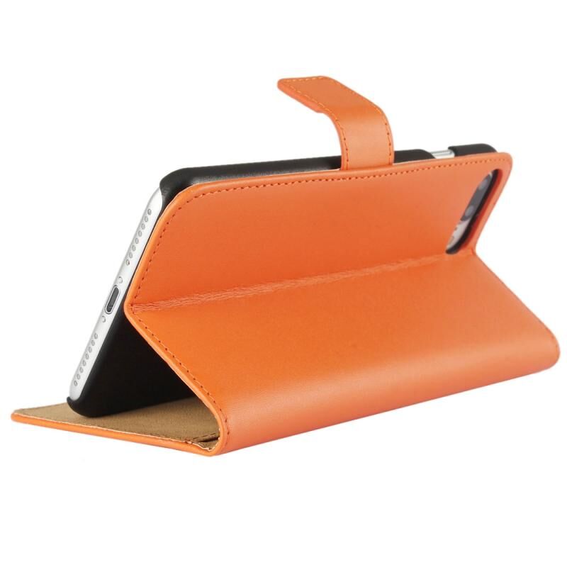 Γνήσια δερμάτινη θήκη flip οριζόντιας διαίρεσης για iPhone 8 Plus & 7 Plus με βάση & υποδοχές καρτών & πορτοφόλι (Μαύρο)