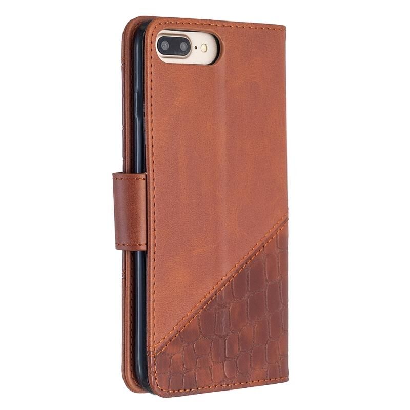 Θήκη για iPhone 8 Plus, οριζόντια, από δερματίνη PU με υφή κροκόδειλου, σε ταιριαστό χρώμα, με πορτοφόλι, βάση & θήκες για κάρτες (Καφέ)
