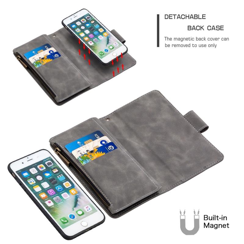 4. Multifunctional design, convenient card slots, zipper wallet, holder, detachable magnetic protective back cover.