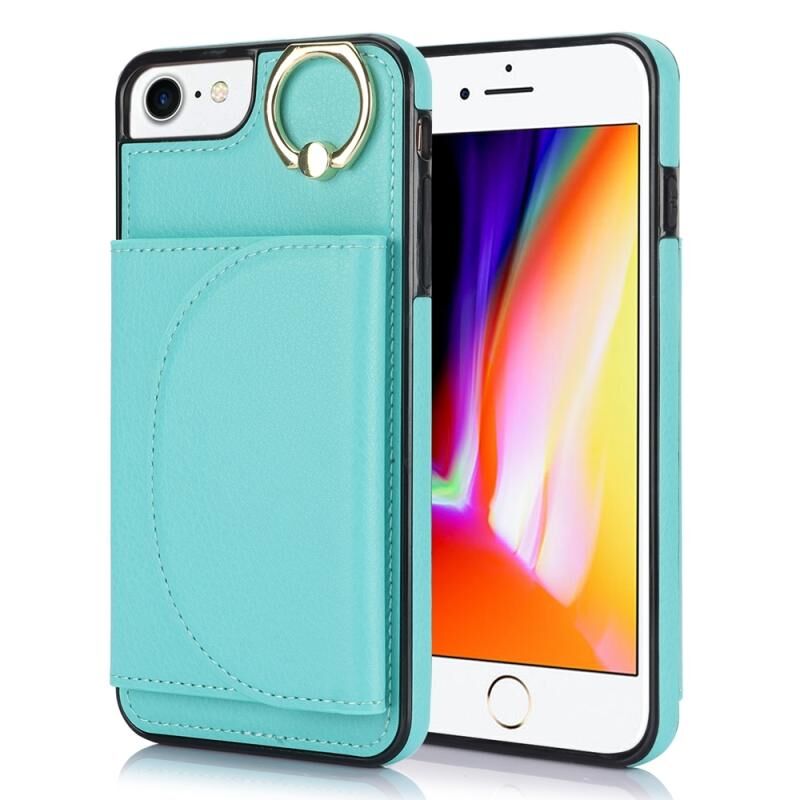 For iPhone SE 2020 / 2020 / 8 / 7 YM007 Ring Holder Card Bag Skin Feel Phone Case(Green)